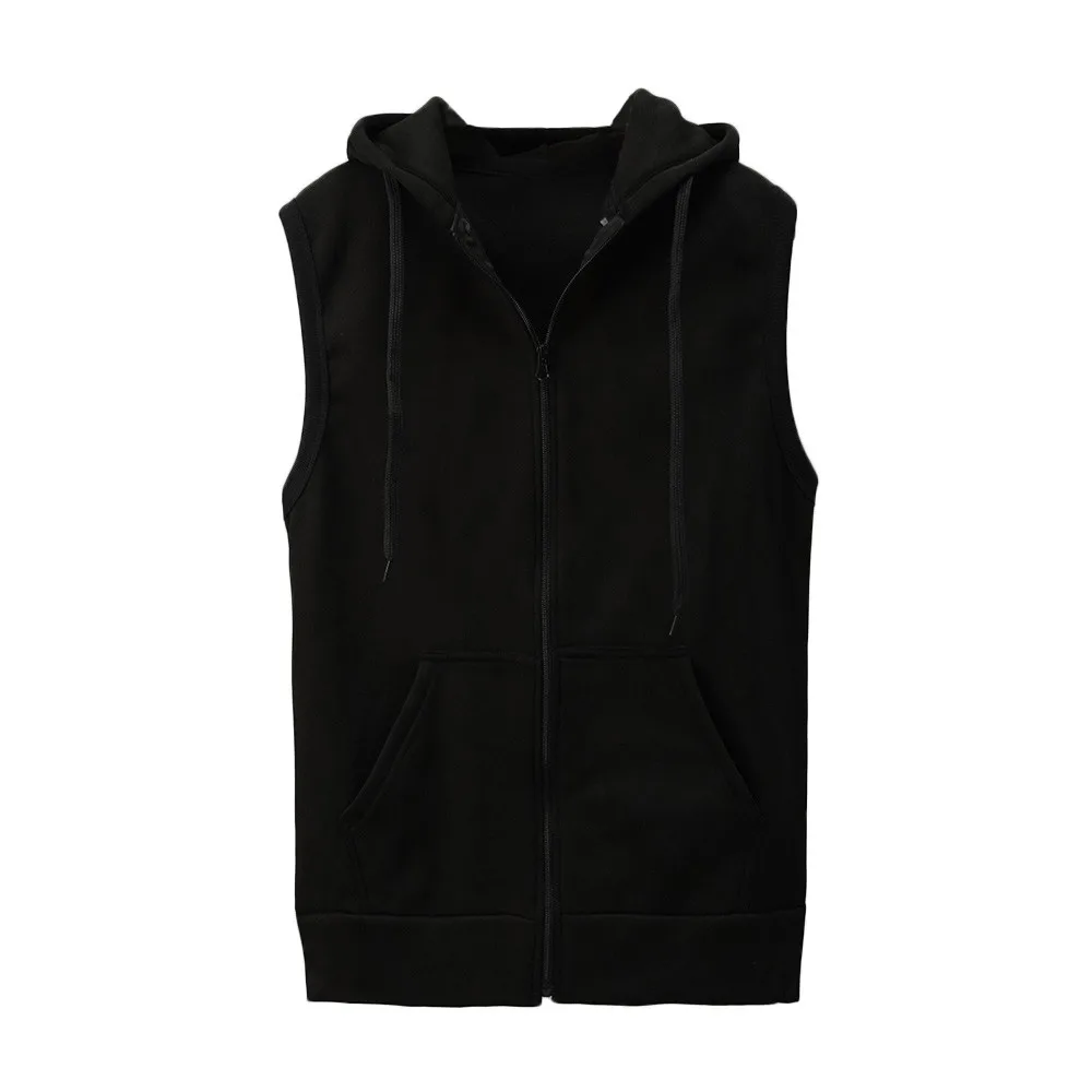 Мужские толстовки для фитнеса, майки, футболка без рукавов, мужская тренировочная майка на молнии с карманами и капюшоном, жилет, однотонная майка, спортивная одежда