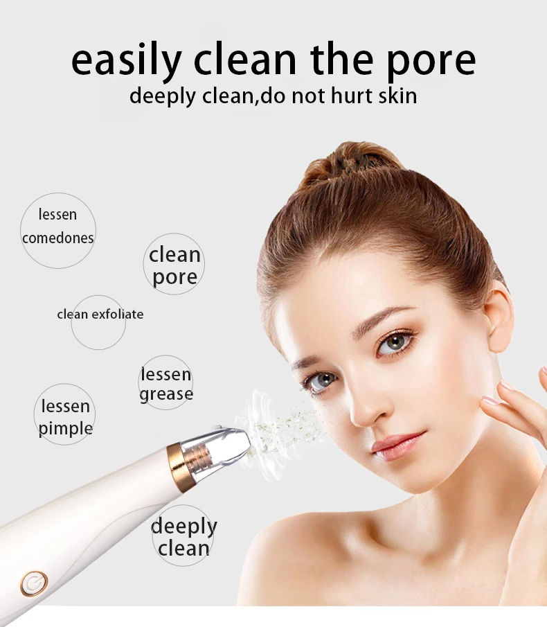 Особенности:Может использоваться для удаления угрей, акне и глубокой очистки лица, подходит для лечения сухой кожи, провисшей кожи, тусклой кожи, а также морщин, увеличения кровообращения в кожеФункция вакуума очищает грязные поры через всасывание и увеличивает кровообращение в кожеПомогает удалить поры, угри, морщины на лице и сохранить вашу кожу чистой, делая кожу гладкой, чтобы быть омолаженной
