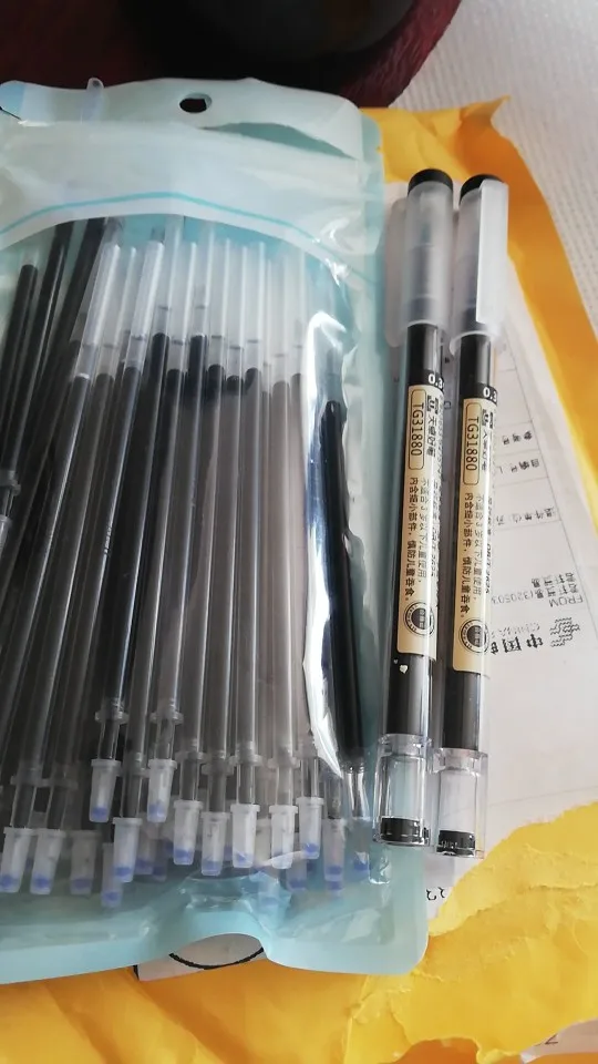 получила 50 штуе отличных стержней и две ручки. Пишут тонко и мягко. Упакованы в плотный зиппакет . Доставка быстрая : всего 17 дней. Посылка отслеживалась с момента отправки. Информация приходила по электронной почте. Очень ответственное отношение к покупаи=телю и своей работе. Большое спасибо. Желаю успеха. Очень рекомендую поупать у этого продавца, тем более , что и цена у нЕго значтитедьно ниже received 50 excellent refills and two gel pens. They write subtly and softly. Packed in a tight zippet. Delivery is fast: only 17 days. The package was tracked from the moment it was sent. The information came by email. A very responsible attitude towards customers and their work. Thank you very much. I wish you success. I highly recommend buying from this seller, especially since the price from him is significantly lower.