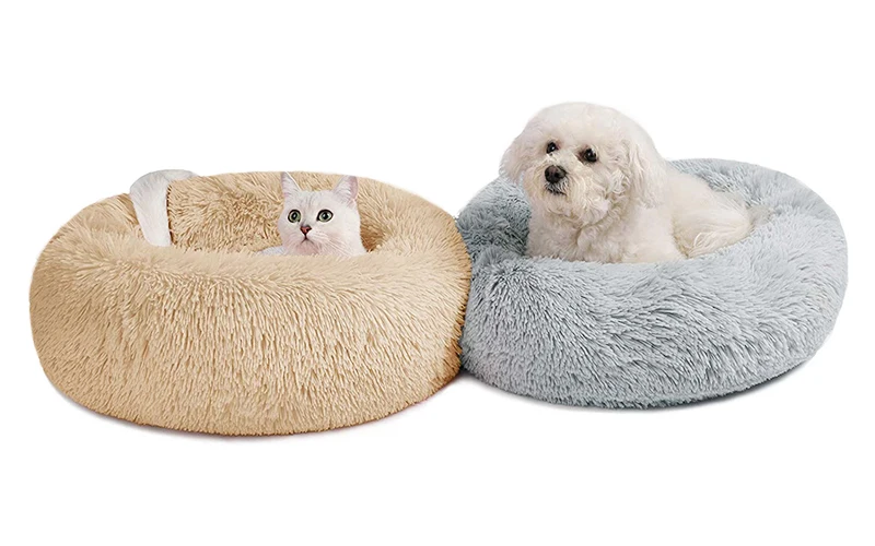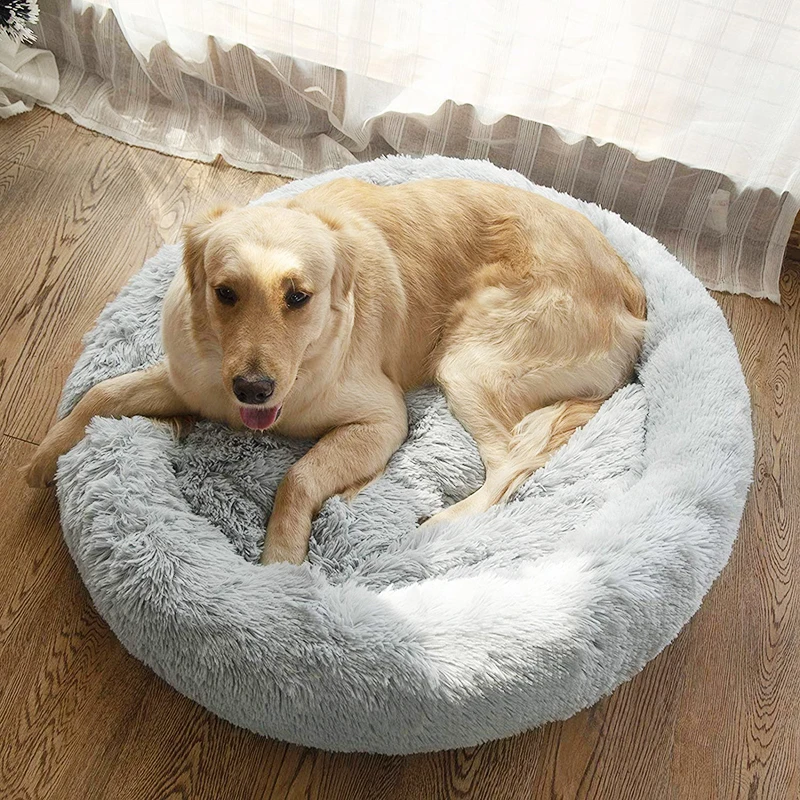 Супер мягкая кровать для собаки, круглая, моющаяся, однотонная, длинная плюшевая собачья будка, зимняя теплая подушка для сна, для щенка, коврик, товары для кошек