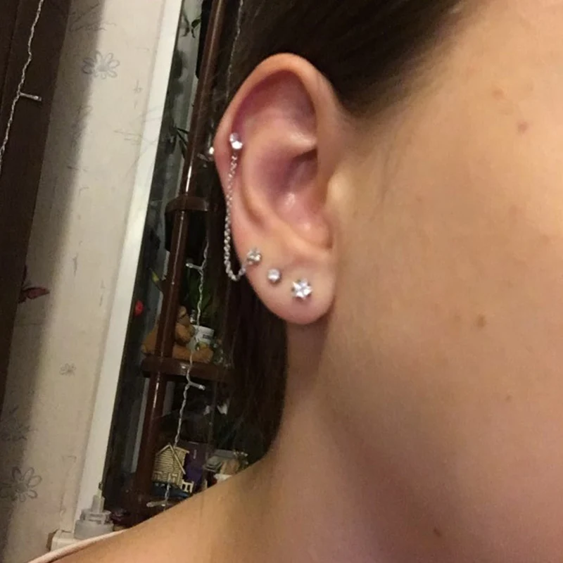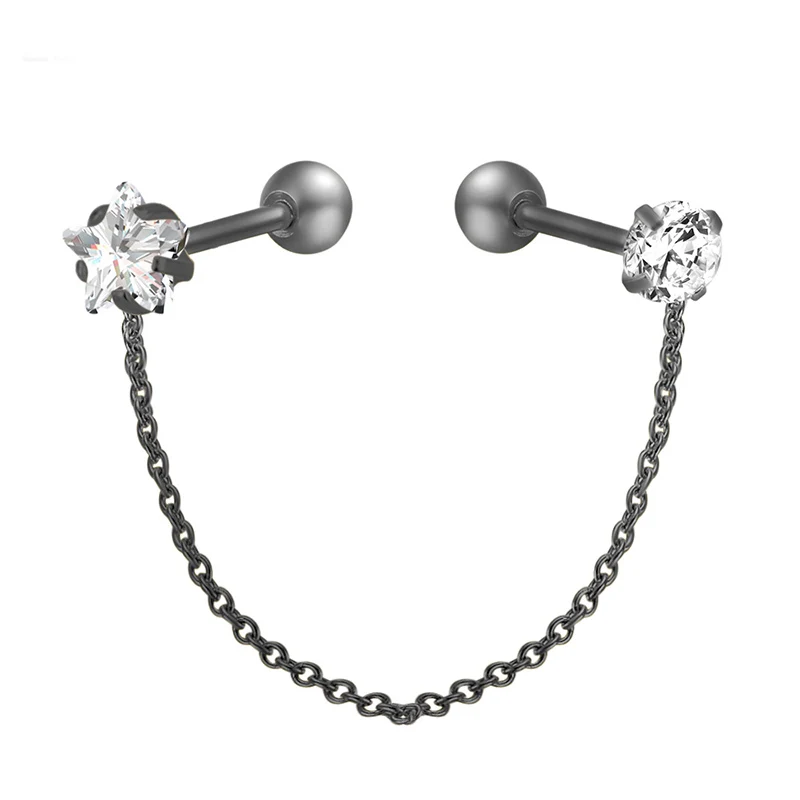 Серьги-гвоздики из хирургической стали, с цирконом, неаллергенные, на цепочке, украшения для тела, пирсинг, модные украшения, 1 шт.