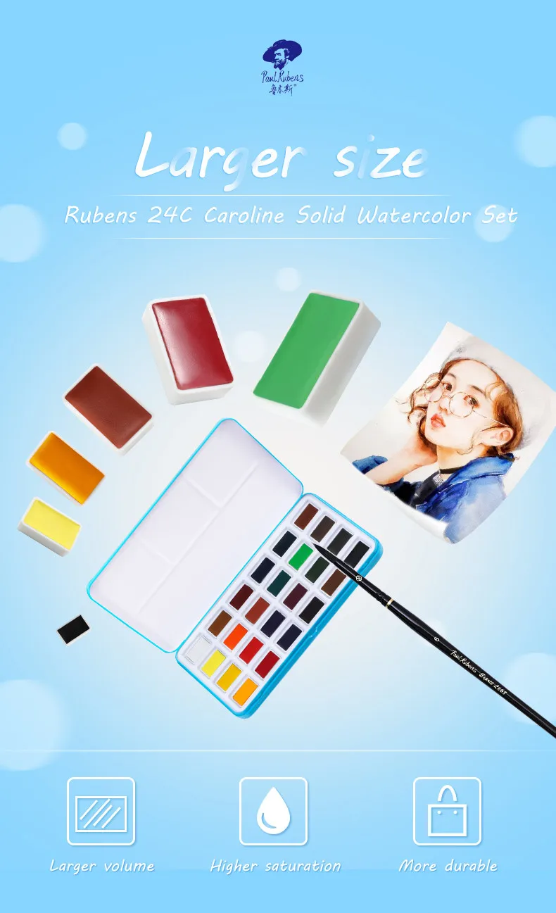Краска Акварельная Paul Rubens, 24 живых цвета, большой полноразмерный пигмент для художников, начинающих рисовать
