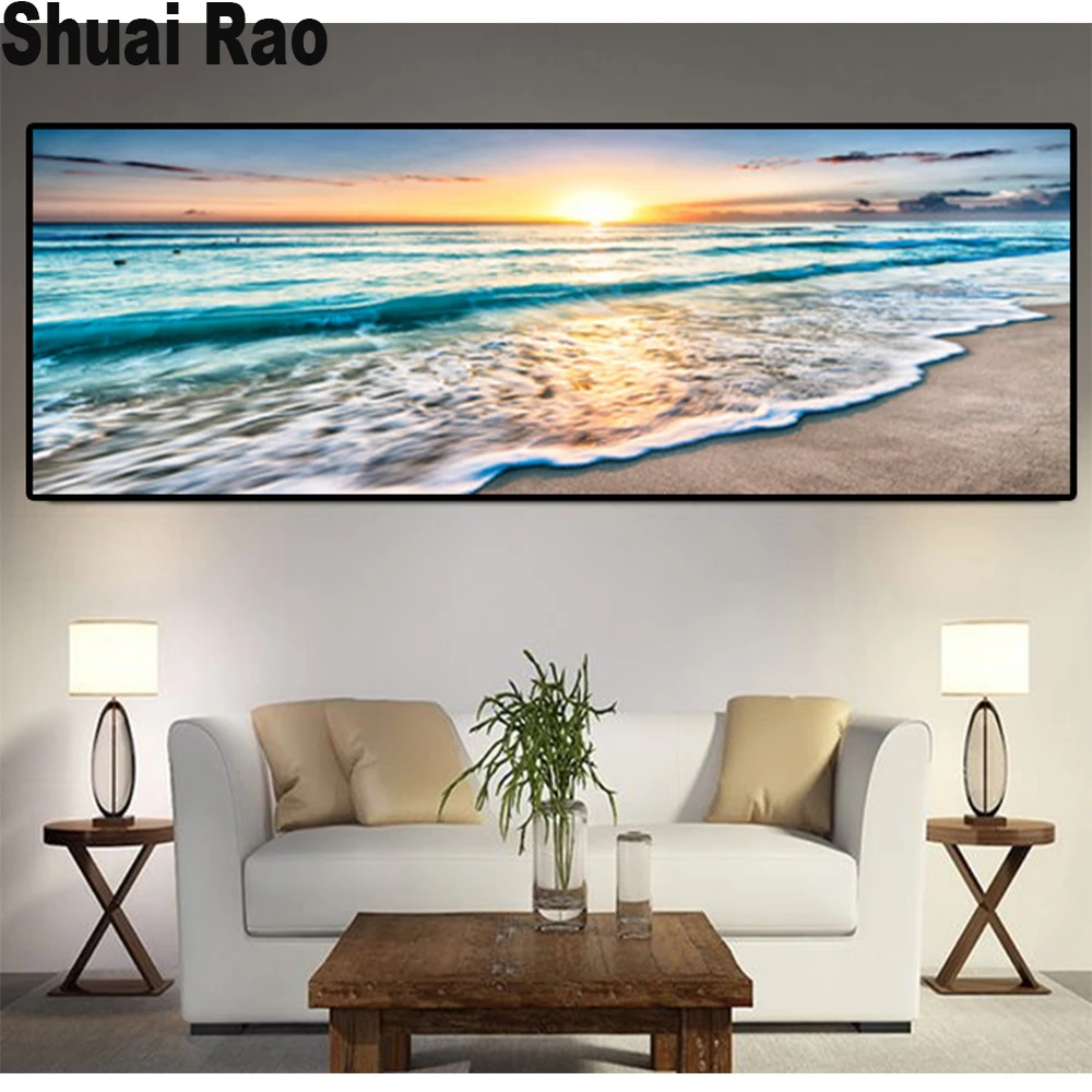 Большой размер 5d diy Алмазная картина полностью квадратные круглые закаты Природный морской пляж пейзаж Алмазная вышивка для домашней картины,