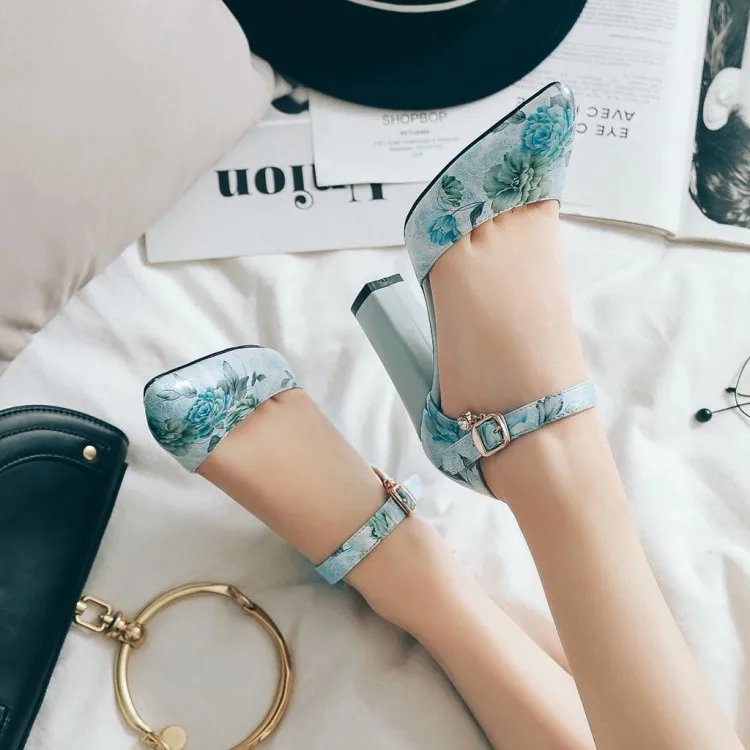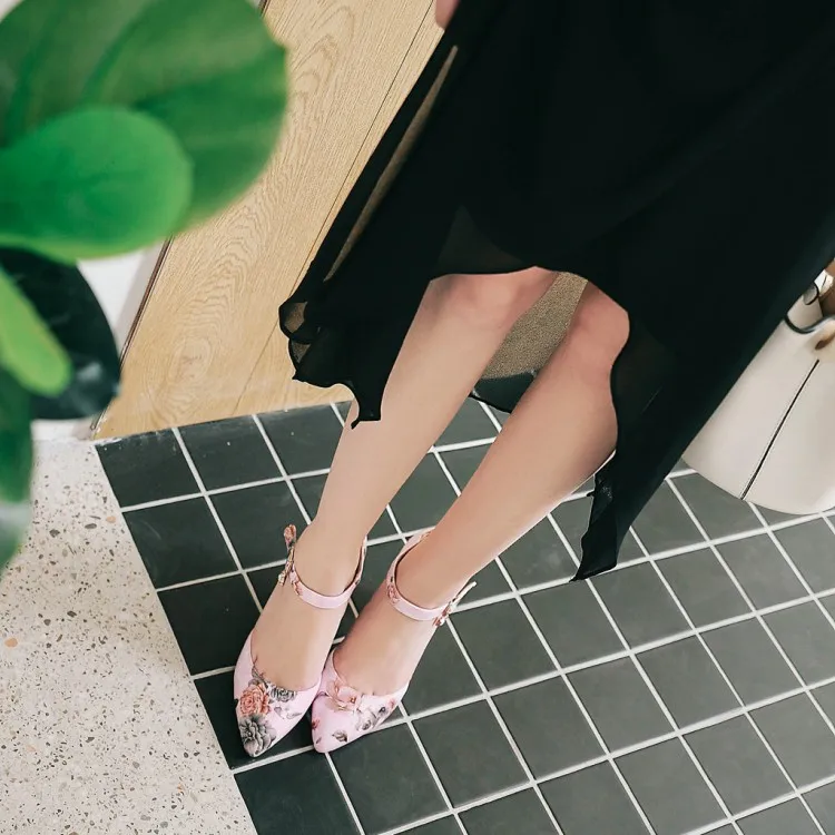 Босоножки с цветами, на толстом каблуке, большой размер 43, 44, 45, 46, весна-лето