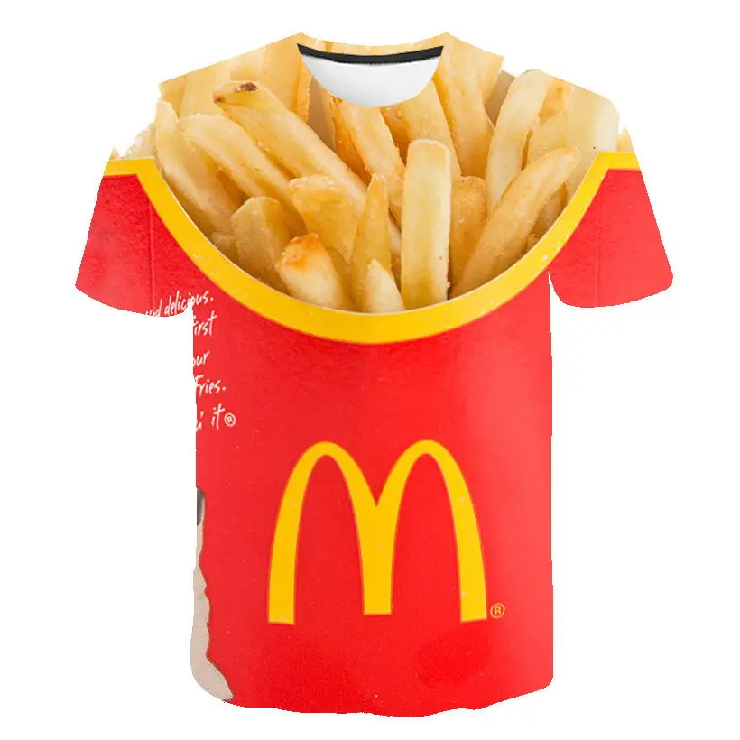 Футболка мужская оверсайз в стиле хип-хоп, модная Свободная рубашка с объемным принтом гамбургеров, картошки фри, фаст-фуда, лето 2020