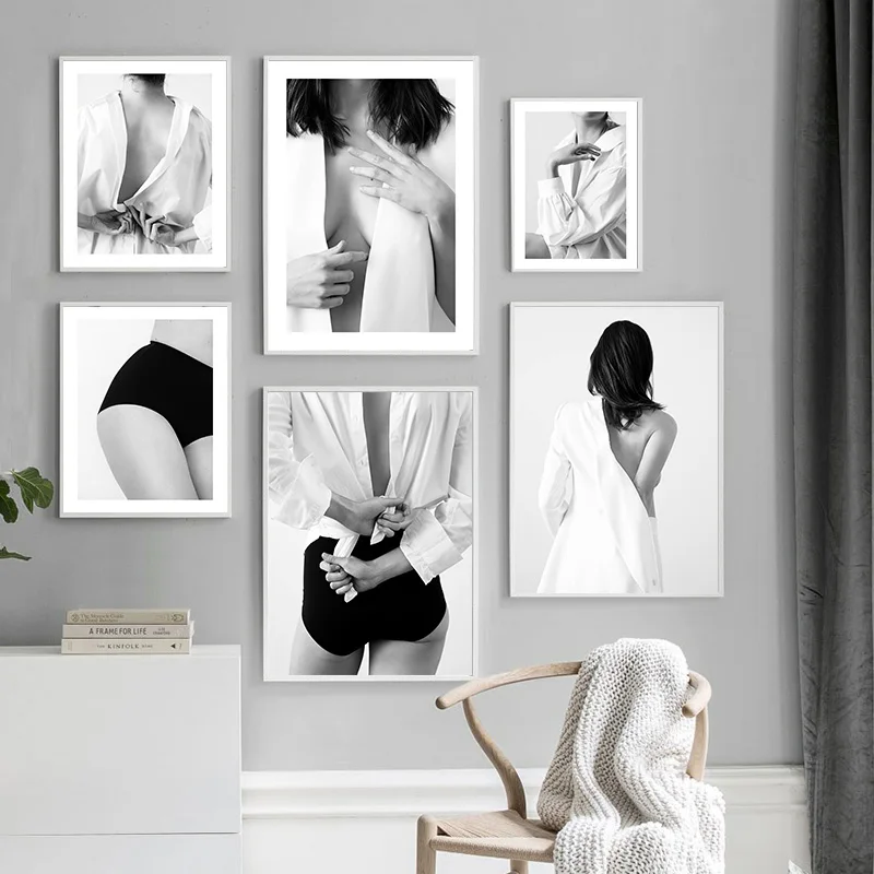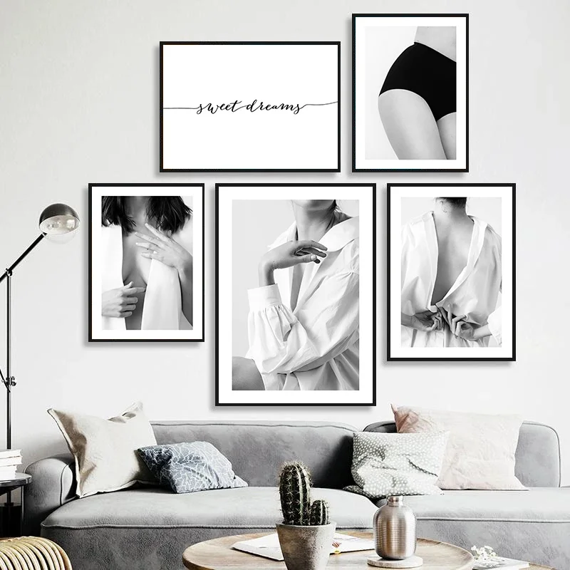 Модное настенное искусство черная белая женщина холст плакат сексуа...