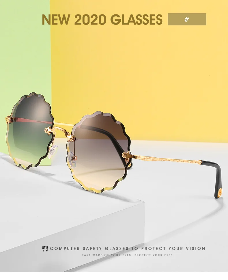 Женские круглые солнцезащитные очки без оправы, брендовые роскошные солнцезащитные очки с защитой от ультрафиолета UV400, 2022