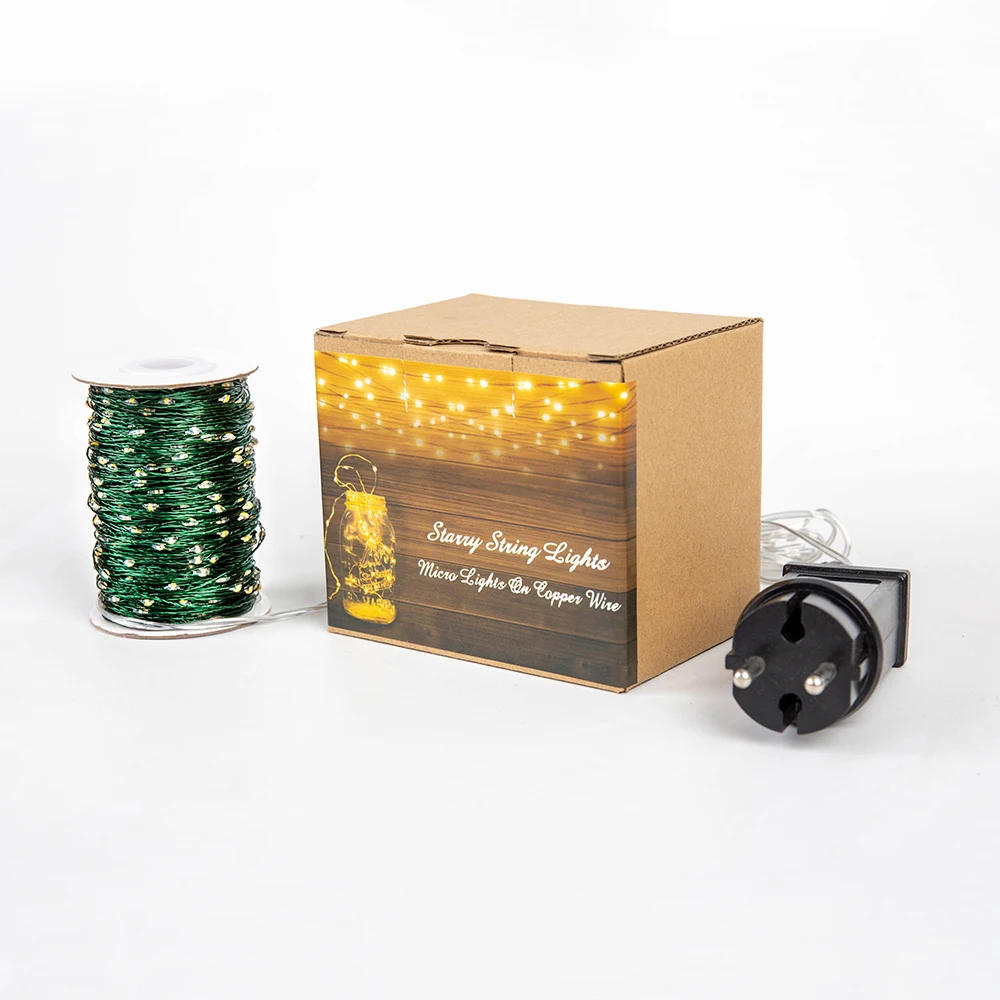 Гирлянда светодиодная, 100 м, зеленый провод, теплый белый цвет