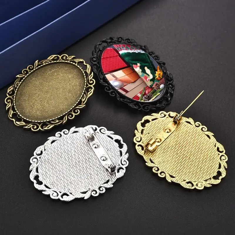 10 шт.компл. покрытая булавка брошь основа Подвеска со стеклянными кабошонами 18x25 мм 30x40 мм круглая овальная форма пустые ювелирные основы DIY