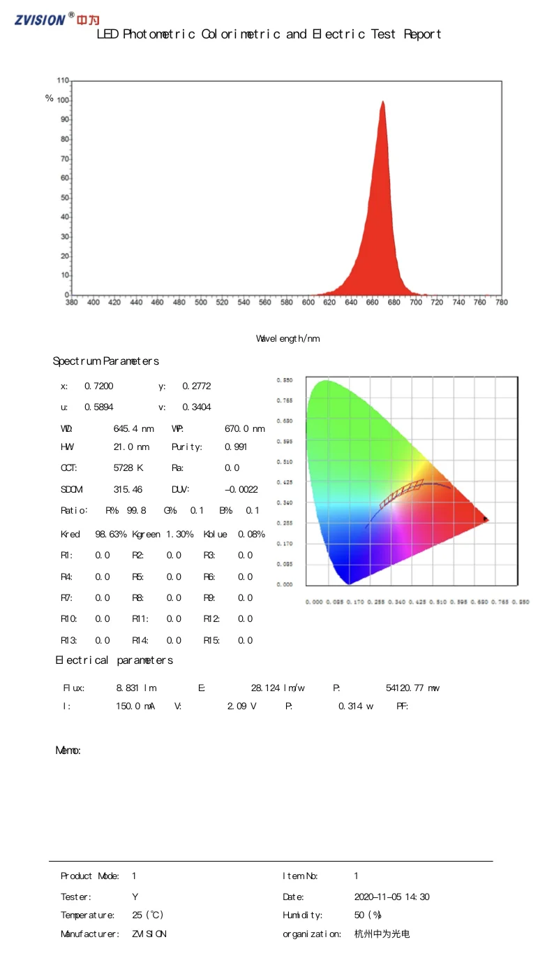 Цвет: 640-660nm