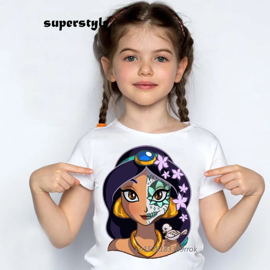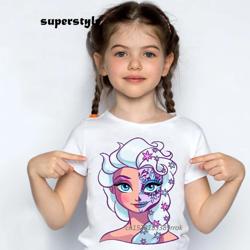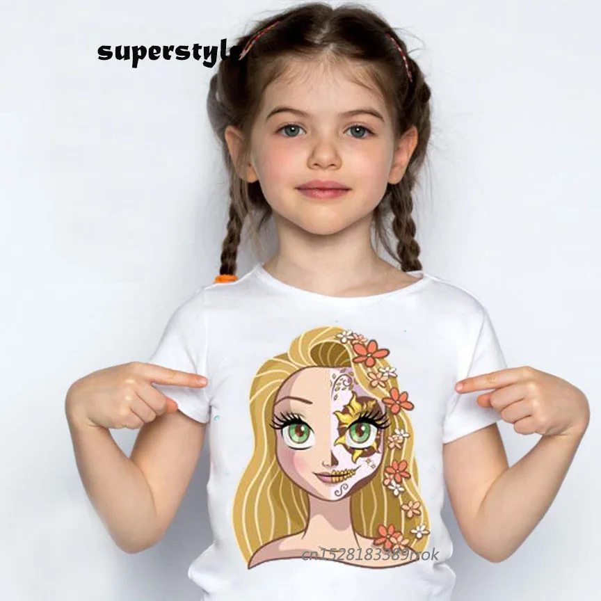 Детская одежда в европейском стиле; Популярные футболки принцессы с татуировкой для девочек; Детская одежда; Летняя белая футболка для маленьких девочек; dHKP426
