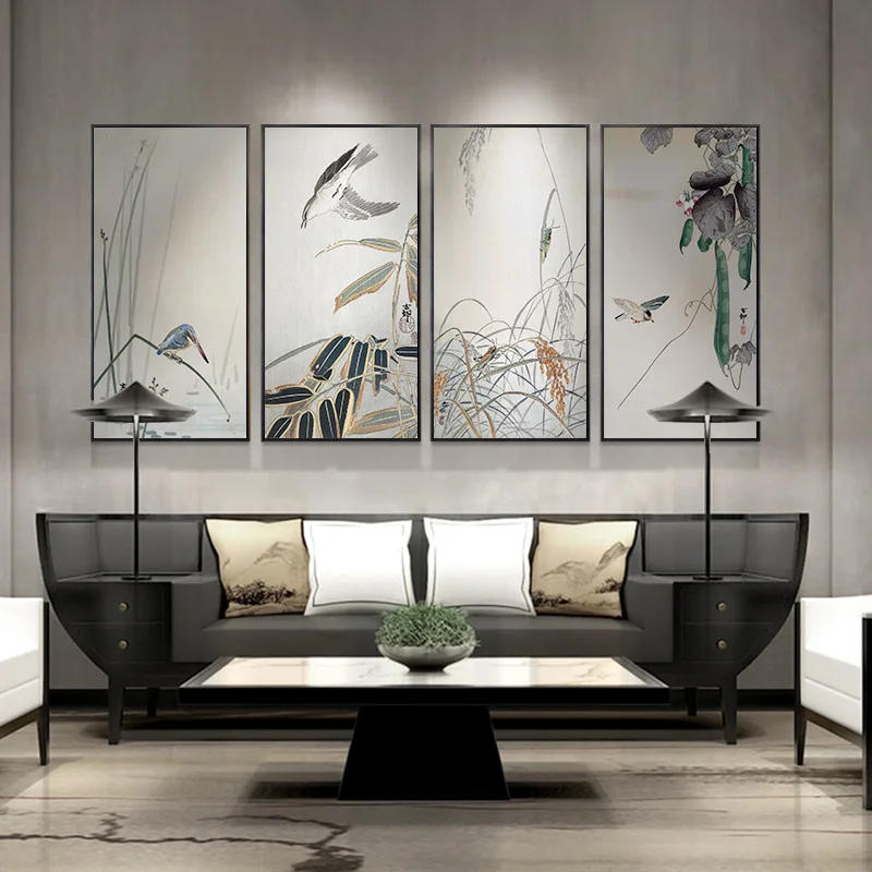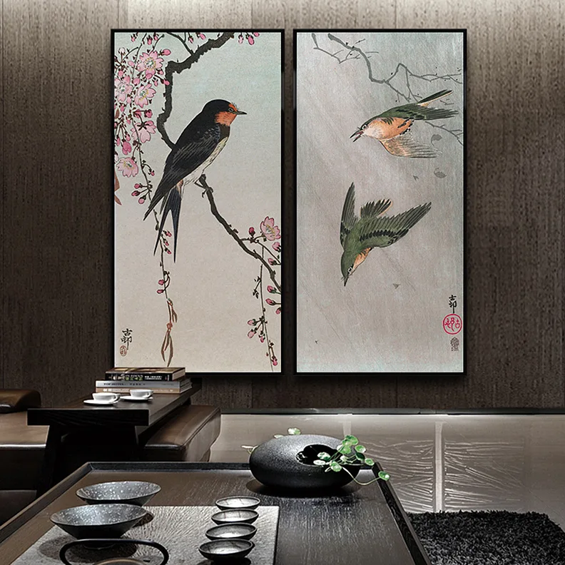 Картина с цветами и птицами в китайском стиле, постеры на холсте дл...