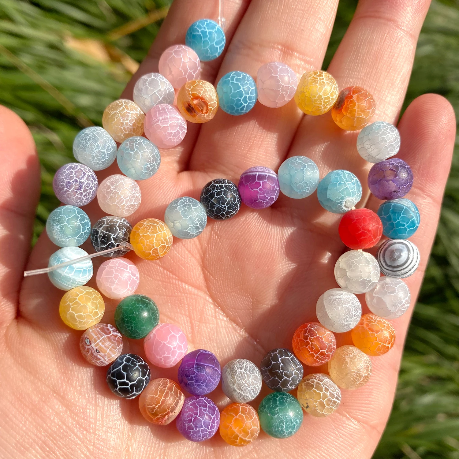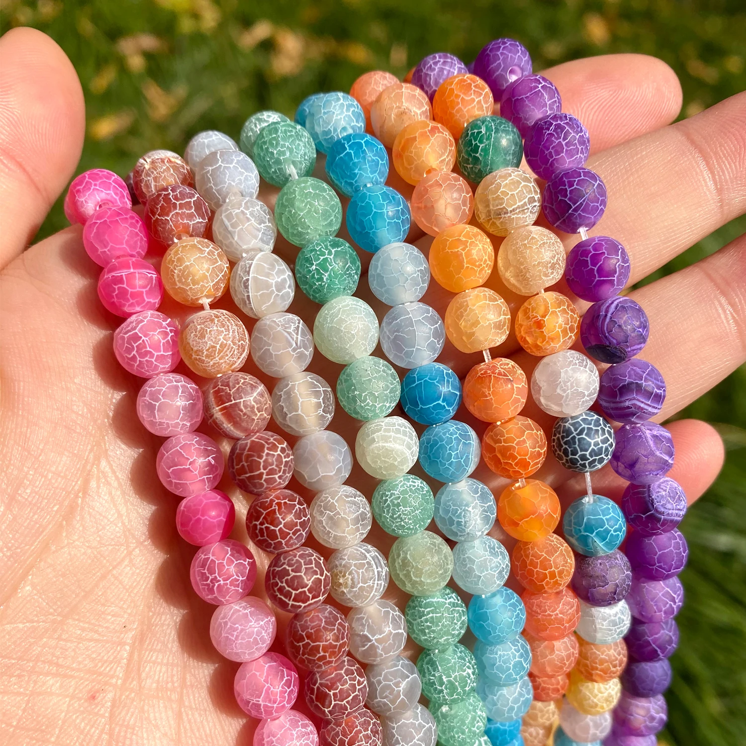Браслет ручной работы натуральный камень, фиолетовый "вены дракона" из круглых бусин для самостоятельного изготовления ювелирных изделий матовый иней треснувший Dream Fire Агаты
