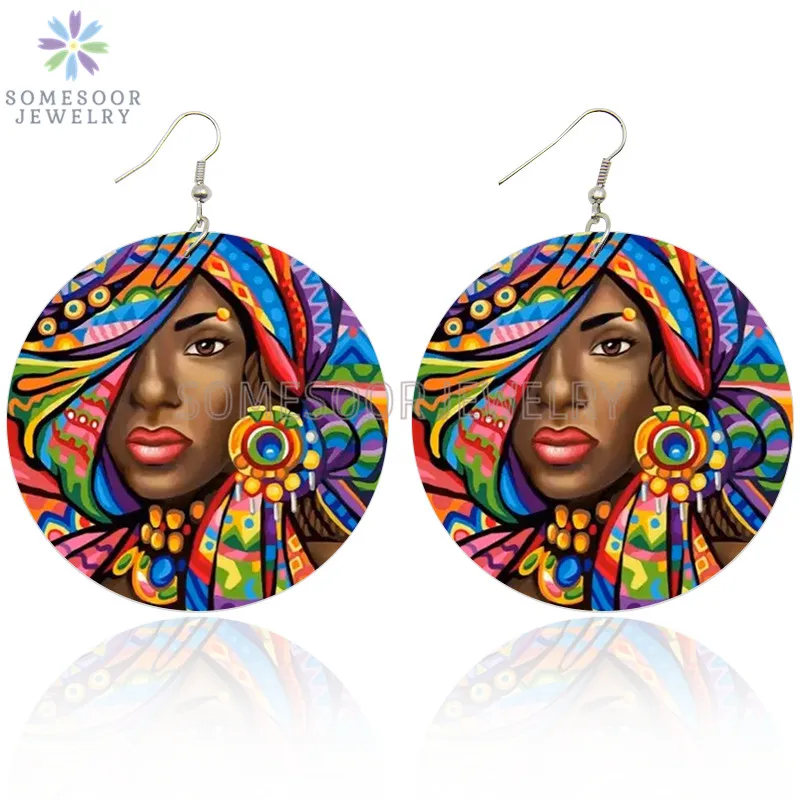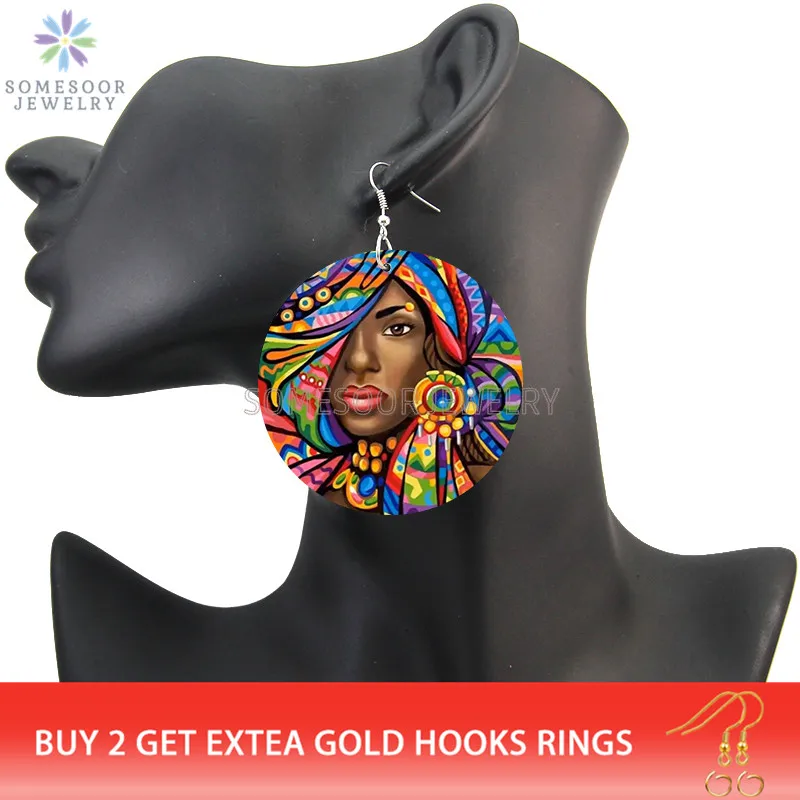 SOMESOOR меланин поппин королева вьющиеся деревянные висячие серьги...