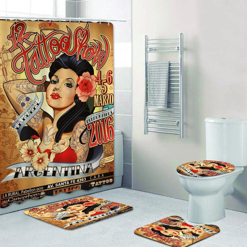 Винтажный потрясающий женский постер с татуировкой, набор занавесок для душа, викторианский цирк, тату для женщин, занавески для ванной, коврики для ванной, Декор