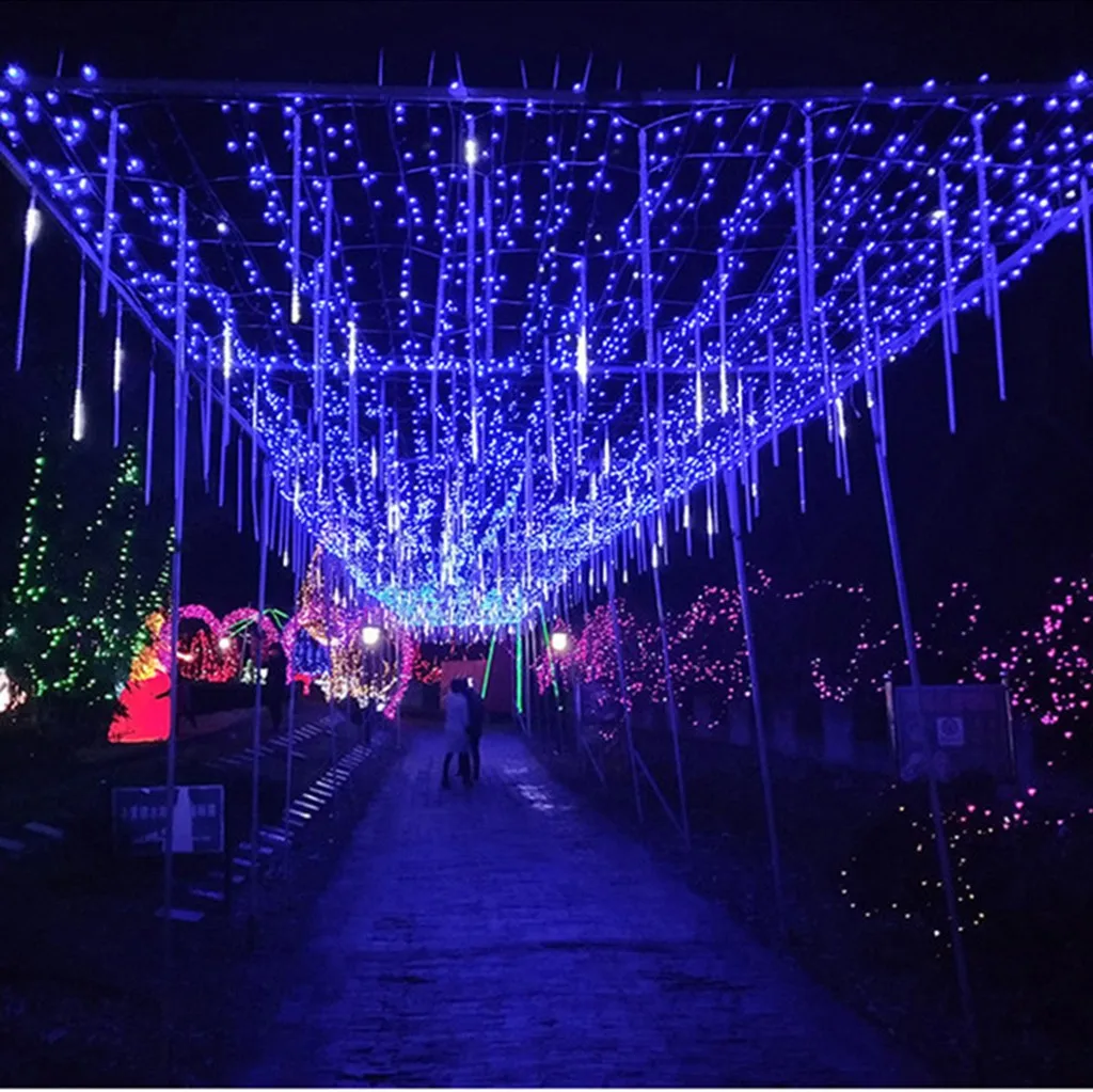 Дождевые огни метеоритного дождя хорошо используются для украшения деревьев по улицам, паркам, рекам, они также подходят для декора дома и сада, Рождества, Нового года, свадьбы, вечерние, торговые центры и отели.