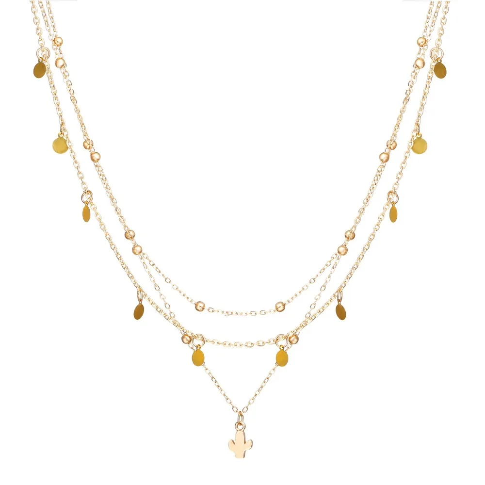 Золотая цепочка KOtik, чокер в стиле бохо для женщин, многослойное геометрическое ожерелье с подвеской-КАКТУСОМ Вечерние