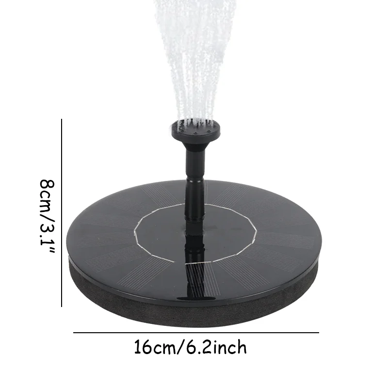 1. Производительность: подключение различных сопла, высота распыления воды будет отличаться. Когда солнечная панель получает достаточное количество солнечного света, водяной насос начнет работать в течение 3 секунд.