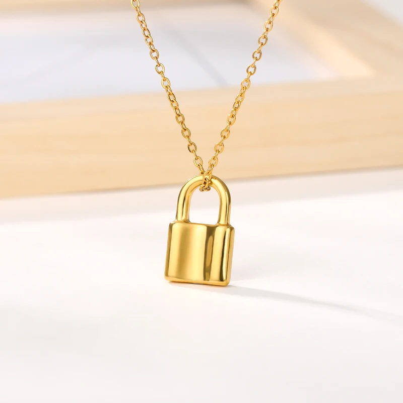 Модные ожерелья в стиле панк с замком для женщин, подвеска из нержавеющей стали золотого цвета с замком, лучший подарок для пары ювелирных изделий