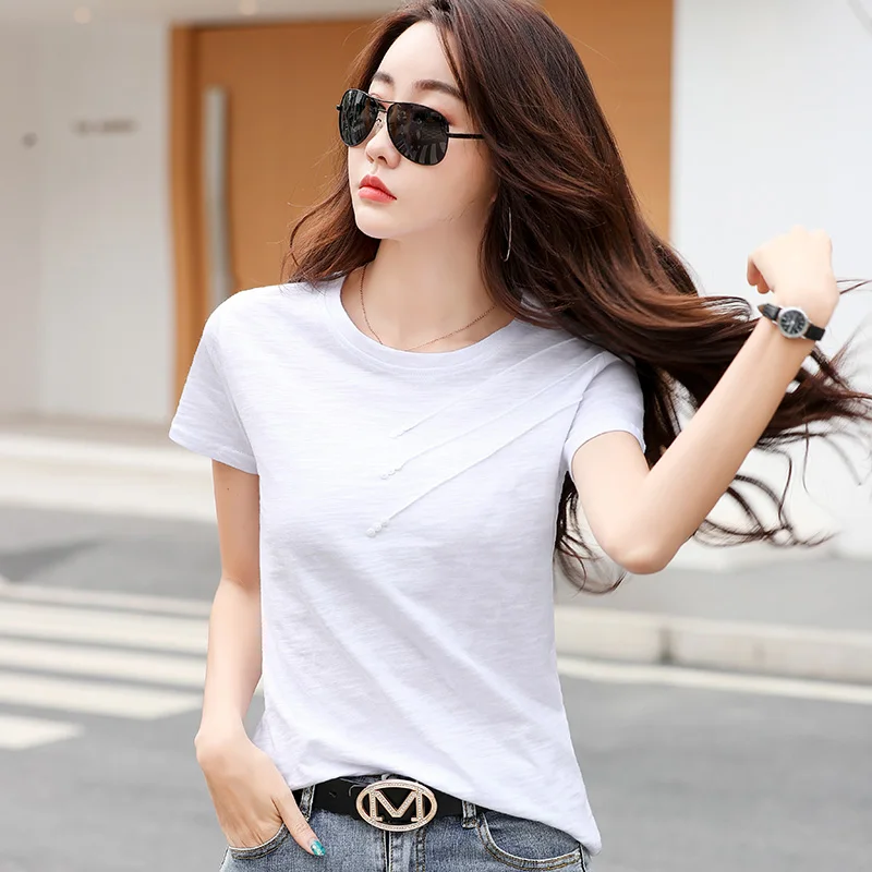 Футболка женская оверсайз из хлопка, Топ Белый, лето 2021