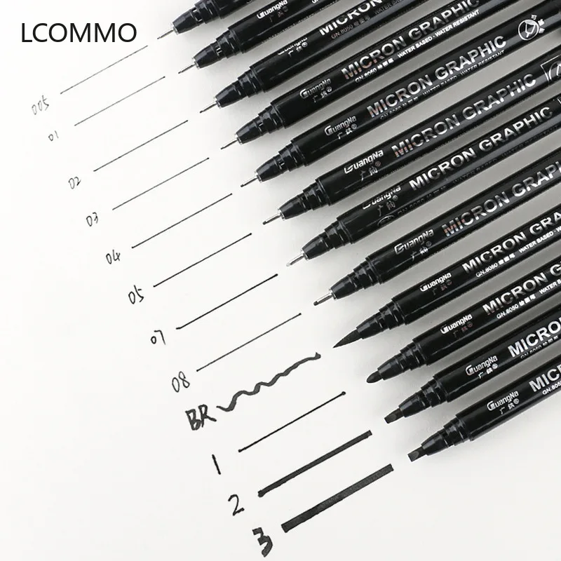 6/9/12 шт./компл. пигментный лайнер, Микронная чернильная маркерная ручка, разный наконечник, черные ручки для скетчинга, ручки для набросков, 12 наконечников