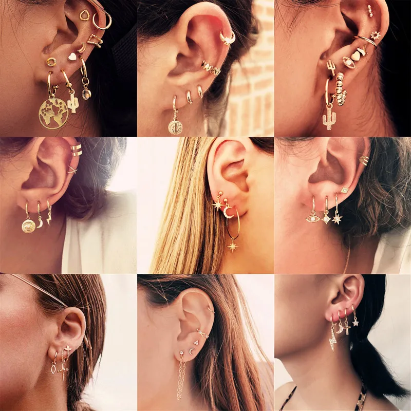 Женский винтажный Металлический Набор серег-колец, серьги в виде мо...
