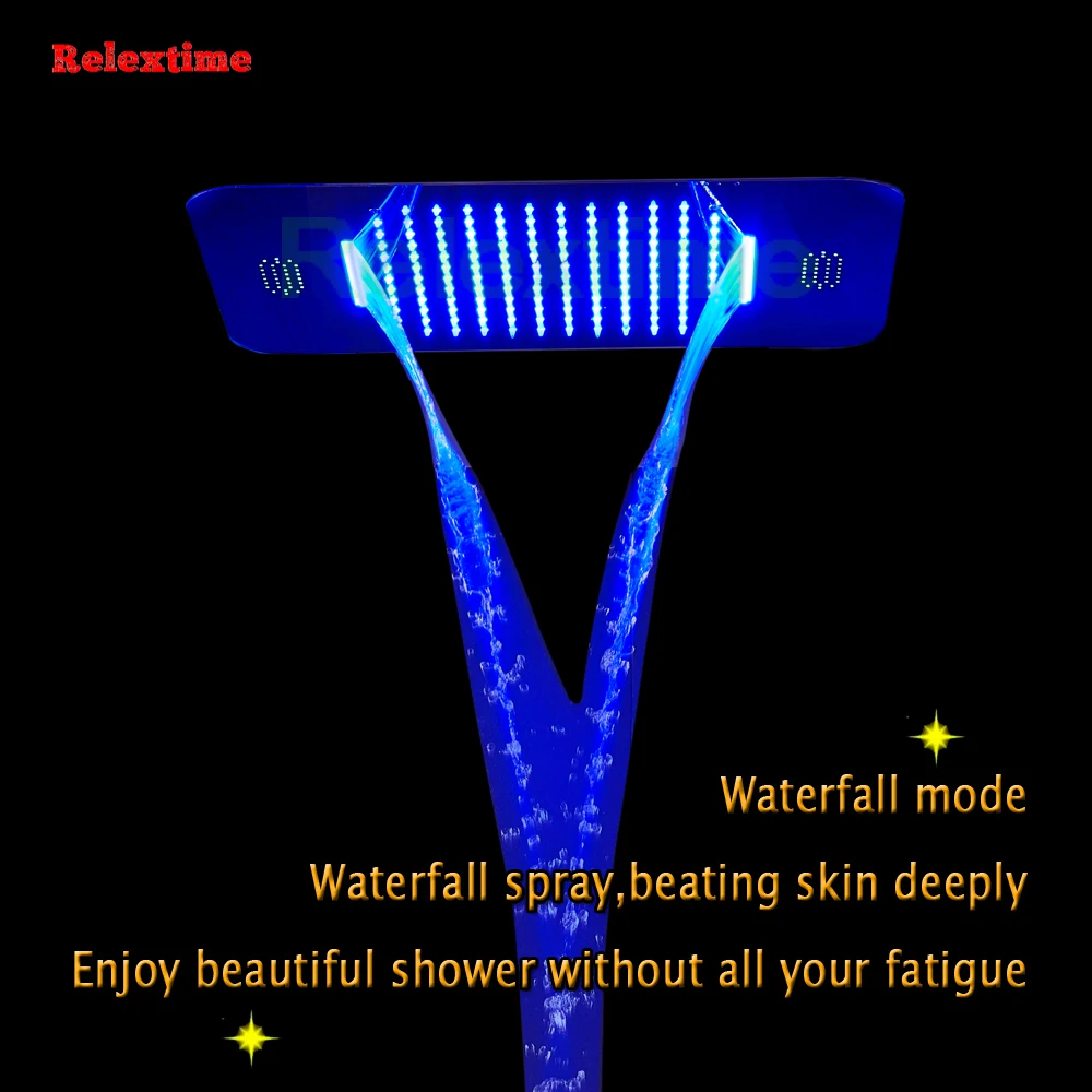 Он изготовлен из SUS304 и закончен зеркалом, размер 580x380 мм, есть 2 функции включает в себя: осадки, водопад, сСоединение Bluetooth,Наслаждайтесь красивой музыкой во время принятия душа, с роскошным светодиодный ным освещением, светодиодный светильник подключен к источнику питания для производства стабильного электричества, поэтому светодиодный светильник имеет длительный срок службы, насадка светится, вода течет из светящейся сопла, она очень красивая и очень романтичная, протестирована на 3 бар давления воды, Скорость потока: дождь: 15 л/м; Водопад: 15 л/м; Он был встроен в потолок, когда мы устанавливали его, размер отверстия потолка 535*335 мм. Напряжение питания, используемое для душевой головки, составляет 90 ~ 260VAC.