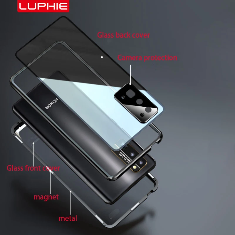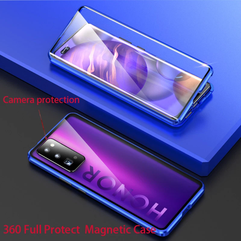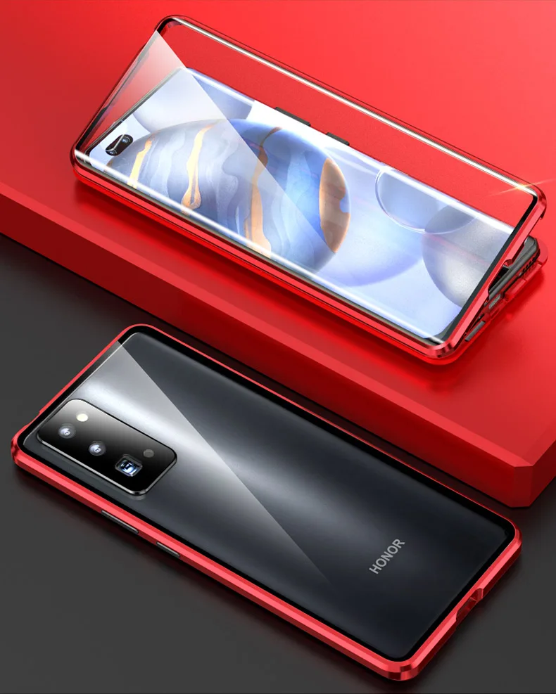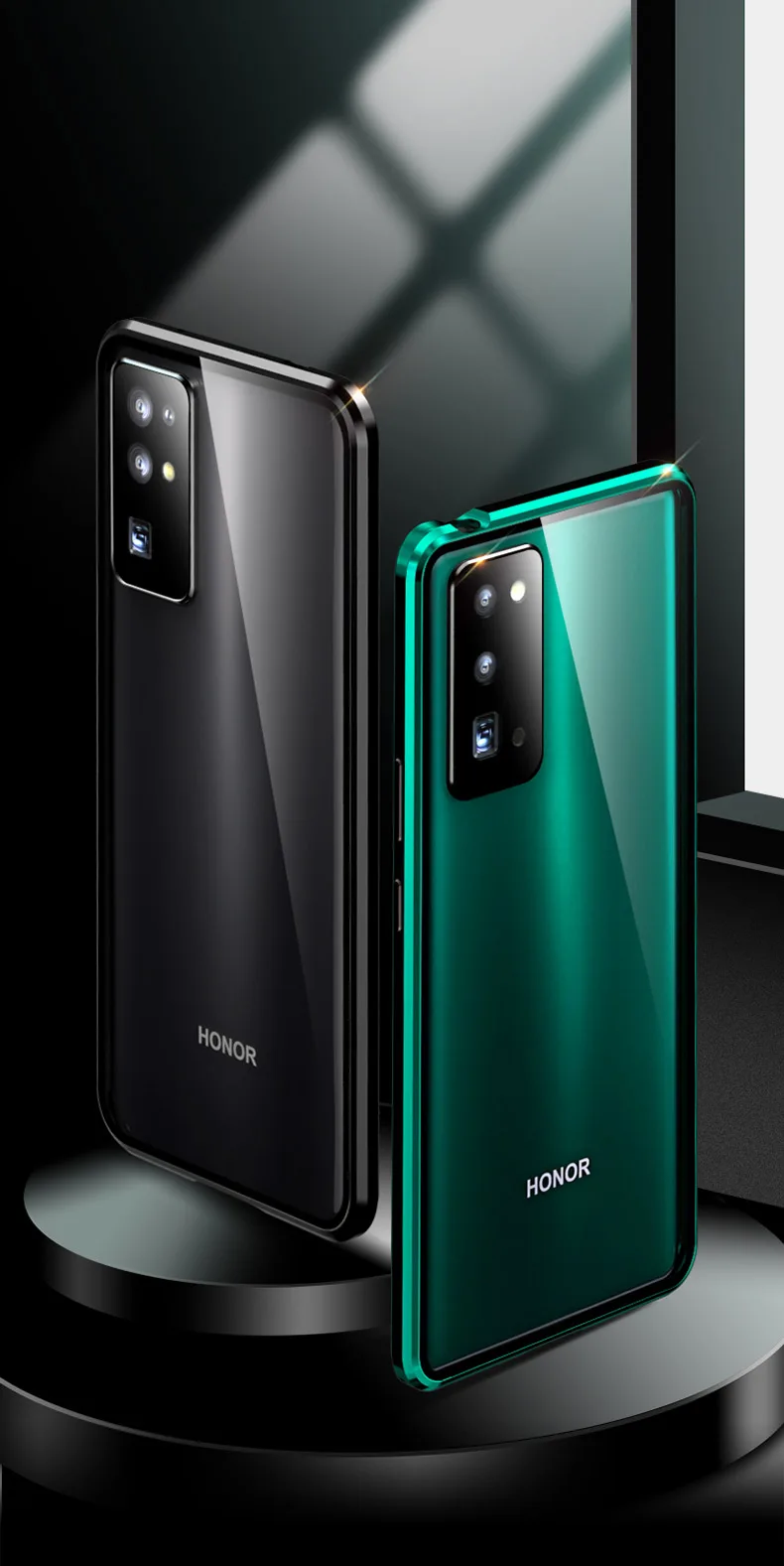 Магнитный чехол с полным покрытием для Honor 30 Pro Plus из закаленного стекла