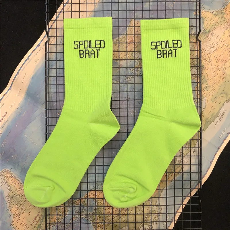 Взрослые хлопковые носки, Забавный испорченный брат, вольт, желтый, зеленый, флуресцене, озорные, детские, официальный оригинальный дизайн, уличная мода