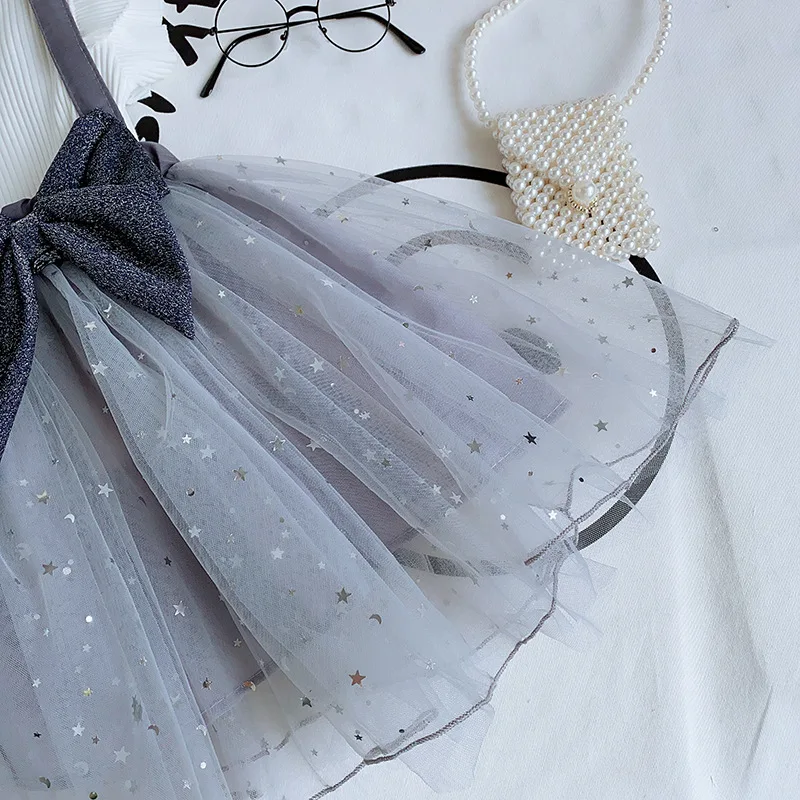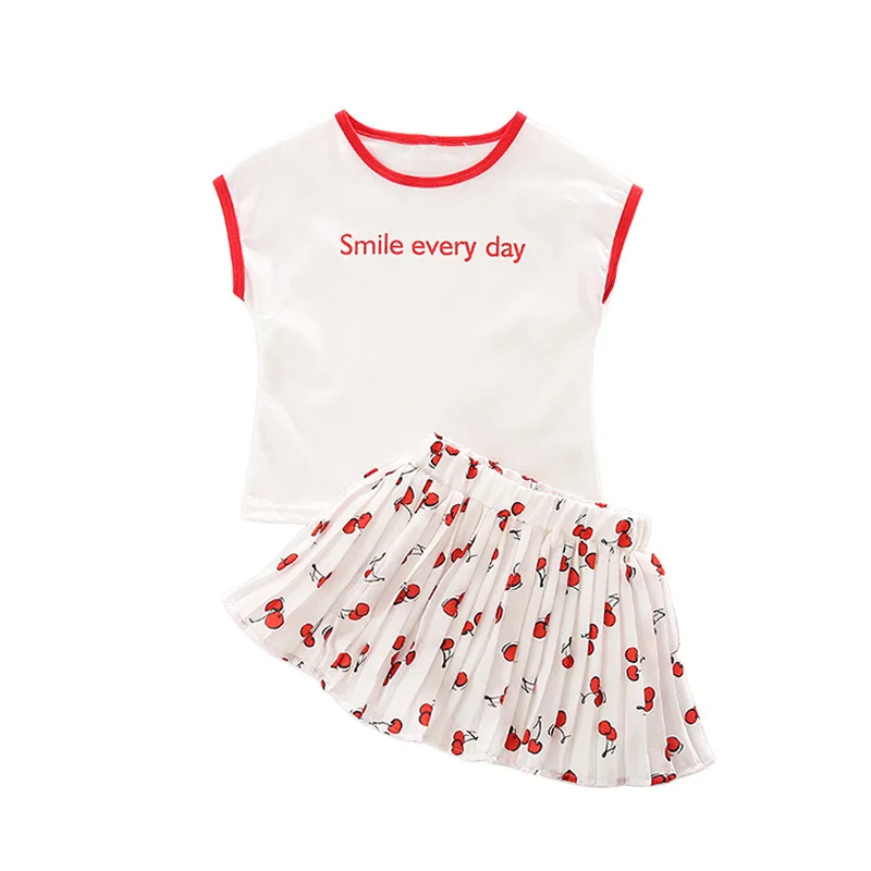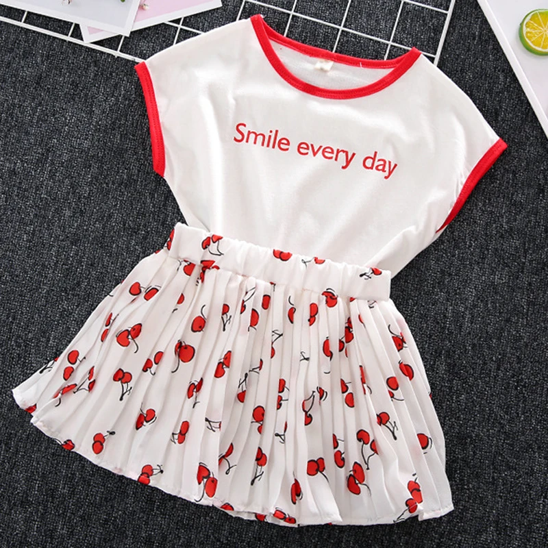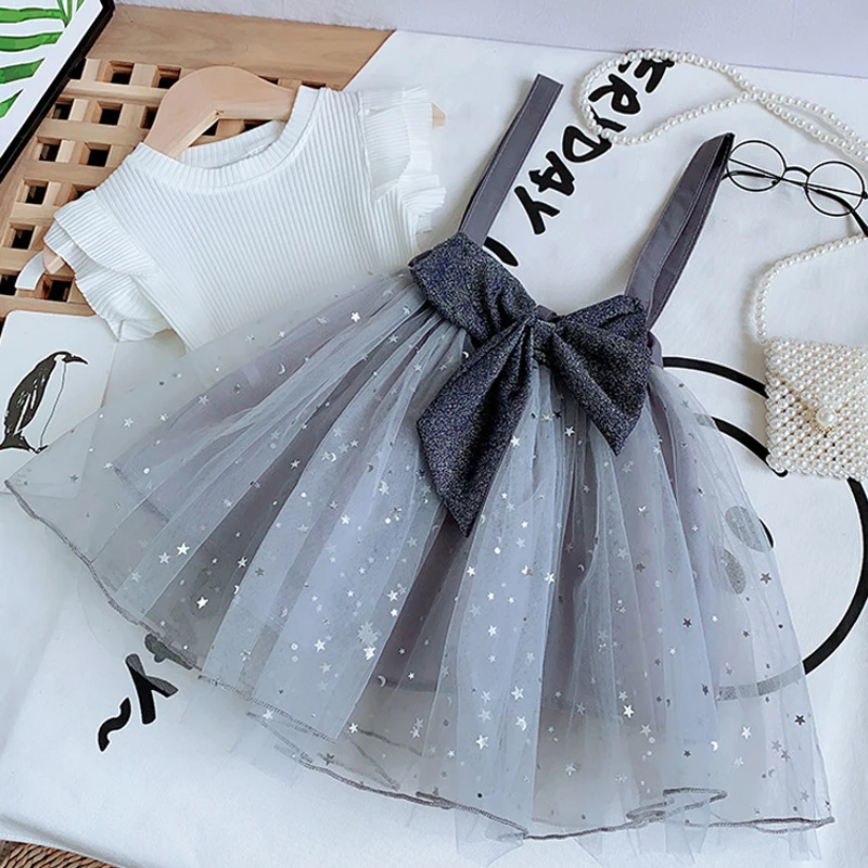 Комплект одежды для девочек, летний топ с летящим рукавом + сетчатая газовая юбка с большим бантом, 2 шт.