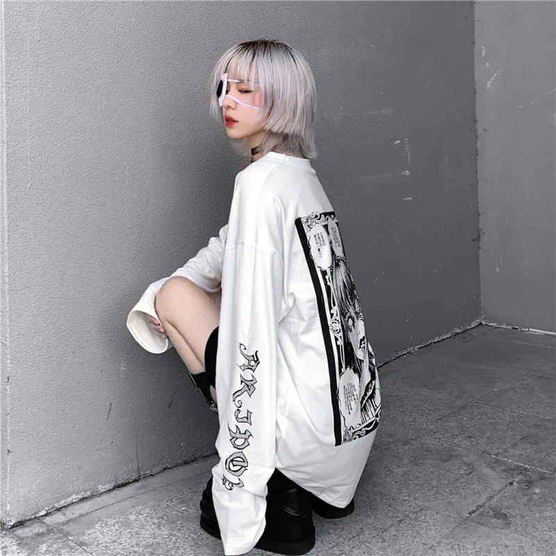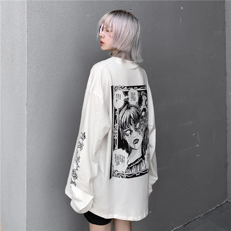 Новинка 2022, яркая женская футболка в стиле Харадзюку, женская футболка Junji Ito, футболка в Корейском стиле, топ, одежда с принтом ужасов и манги, Прямая поставка