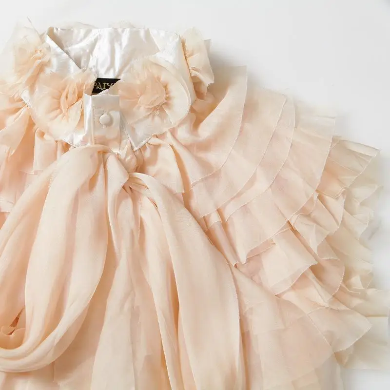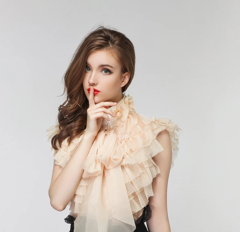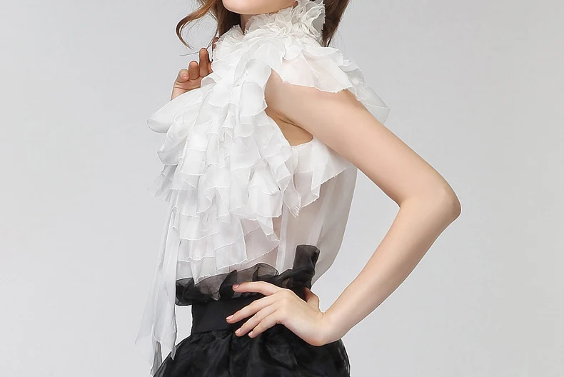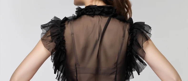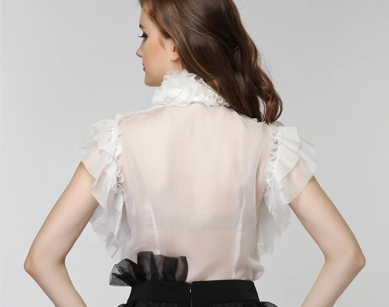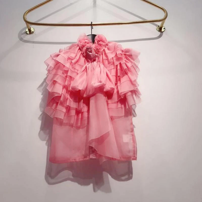 Женская шифоновая блузка без рукавов, брендовая модная одежда больших размеров с оборками и цветочным воротником-стойкой, Роскошная блузка-топ для лета 2021