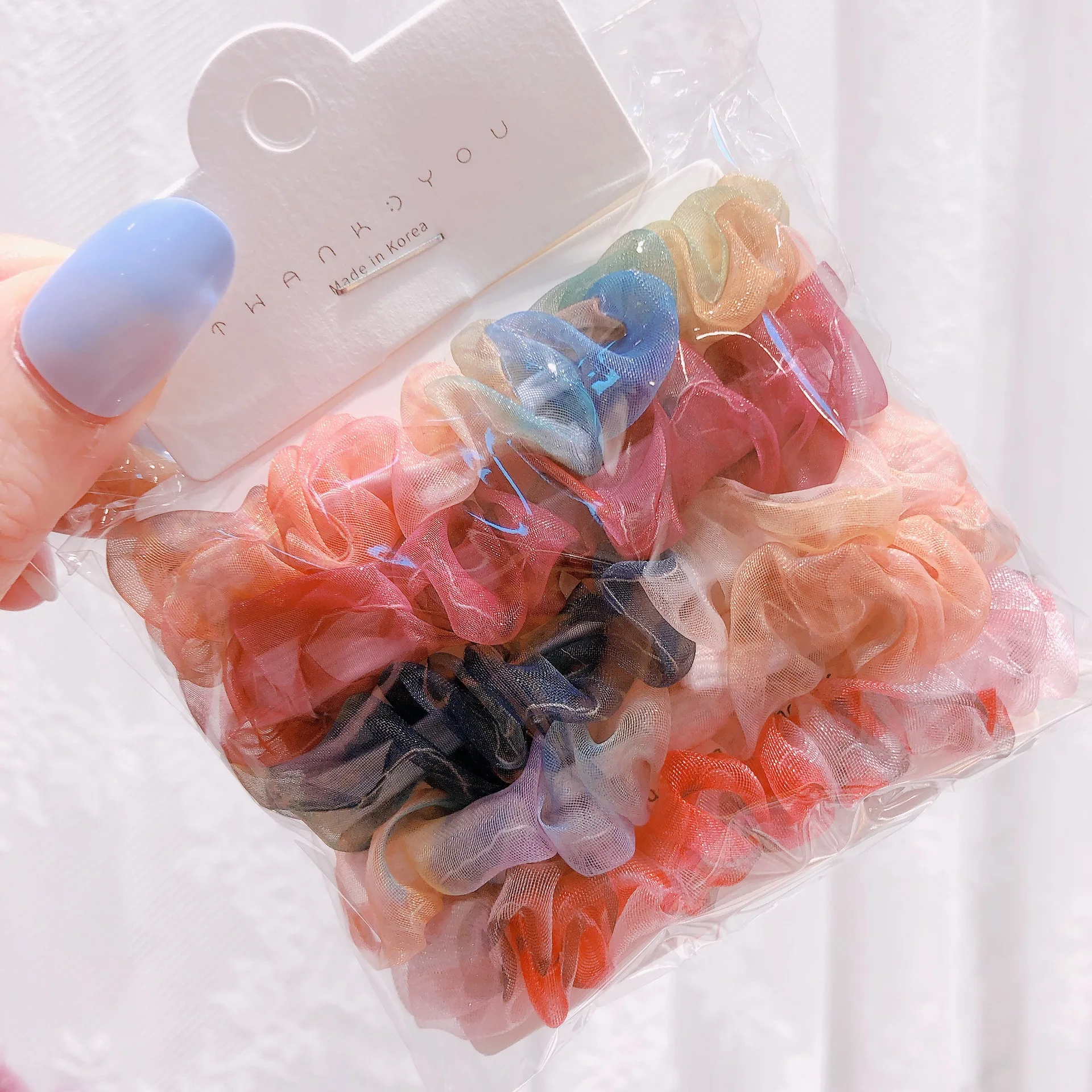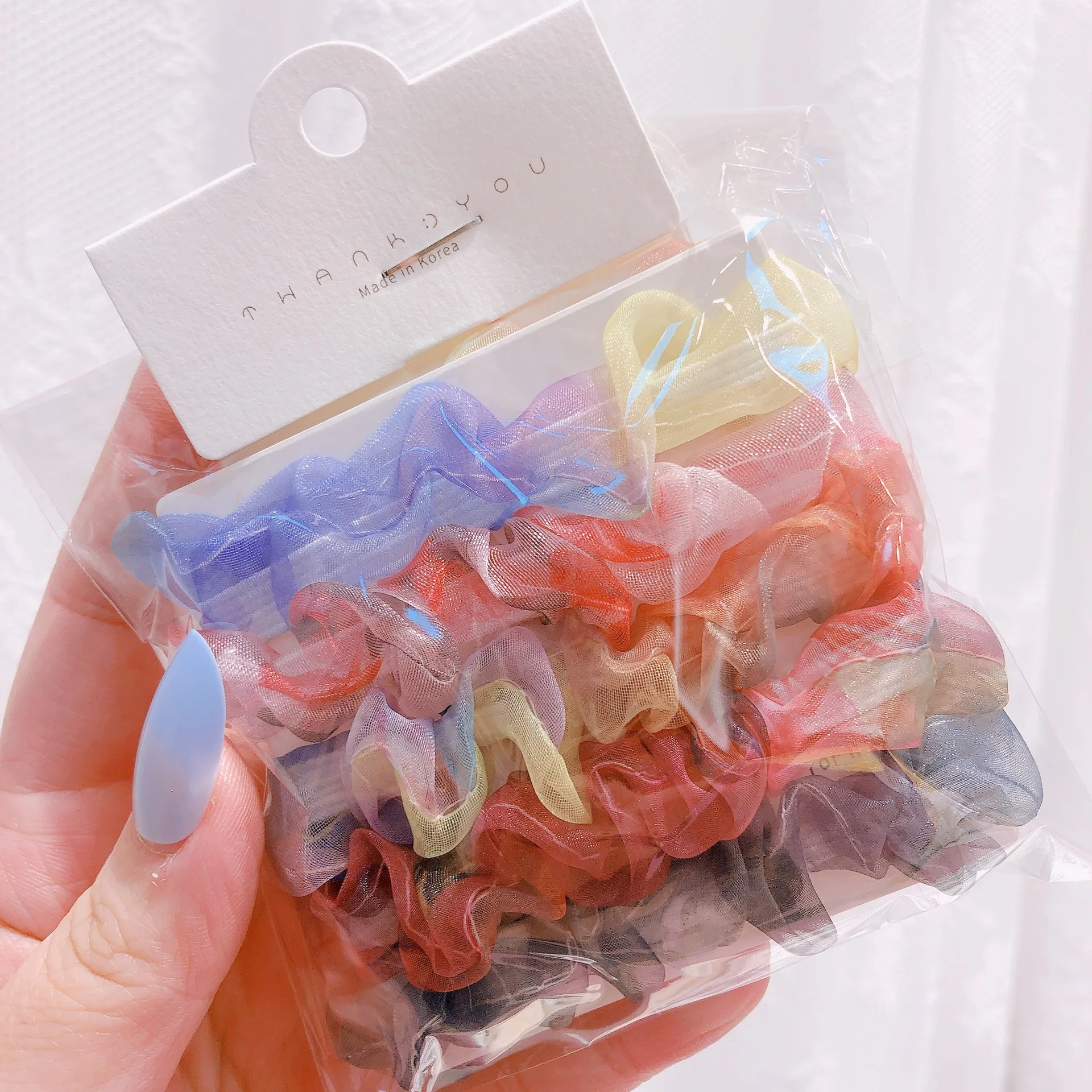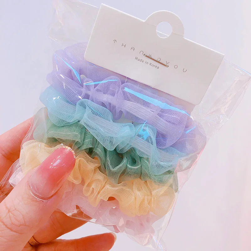 5 шт. в упаковке для женщин эластичные кружевные ленты для волос резинки для девочек очаровательными сетчатыми оборочками, обтянутая тканью; Набор из фатина с лентой, украшение на голову; Аксессуары для волос