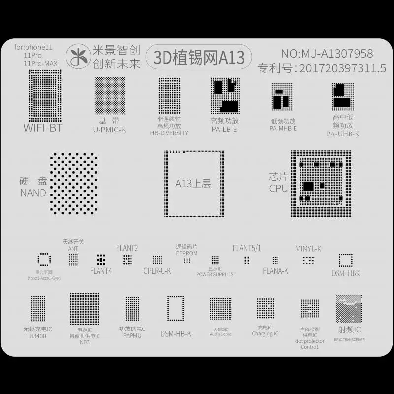 3d-трафарет BGA для A8 A9 A10 A11 A12 A13, шаблон для реболлинга ЦПУ для iPhone 11, 11 Pro, X, XS MAX, 6, 6S, 7, 8, 8P, BGA