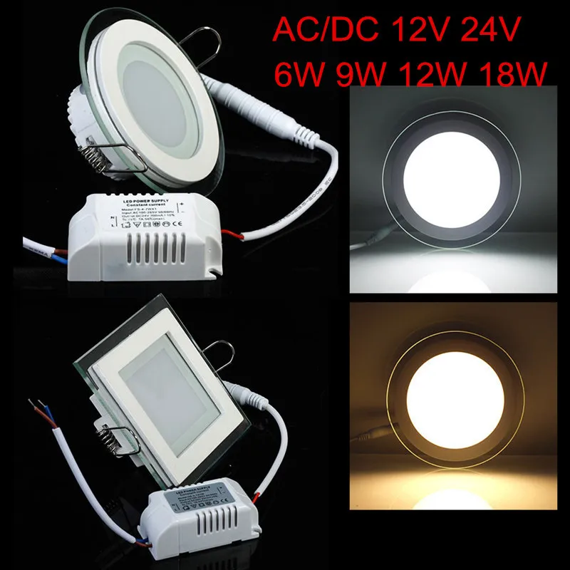 Светодиодный потолочный светильник, 12 В, 24 В, 6 Вт, 9 Вт, 12 Вт, 18 Вт, квадратнаякруглая стеклянная панельная лампа, высокая яркость, встраиваемые лампы для дома, ванной комнаты