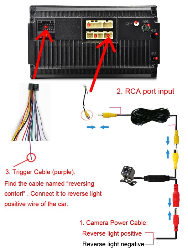 Примечание: видео порт задней камеры должен вставить порт «CAMIN» автомобильного радио.
