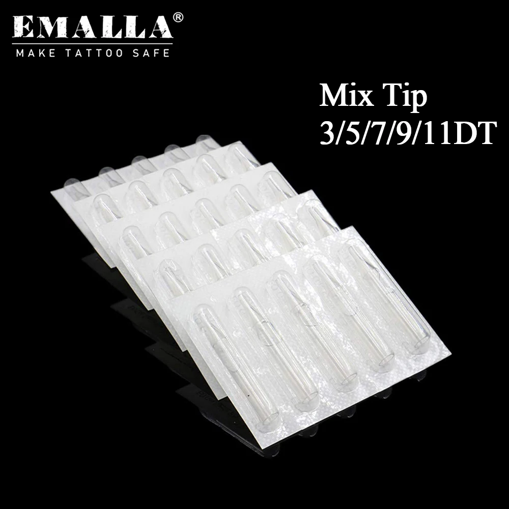 EMALLA 100 шт. наконечник татуировки 3DT 5DT 7DT 9DT 11DT смешанные размеры прозрачные одноразовые короткие наконечники для тату иглы принадлежности для татуировок
