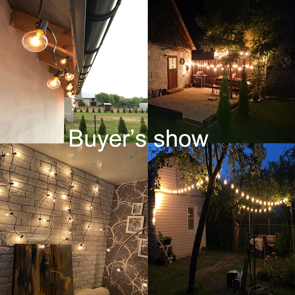 25Ft G40 светодиодный гирлянда с 25 глобусами, прозрачные лампы, водонепроницаемые IP44, патио, подвесные светильники для внутреннего и наружного декора, UL перечисленные максимум 100 лампочек, 30 футов, 50 футов, 100 футов