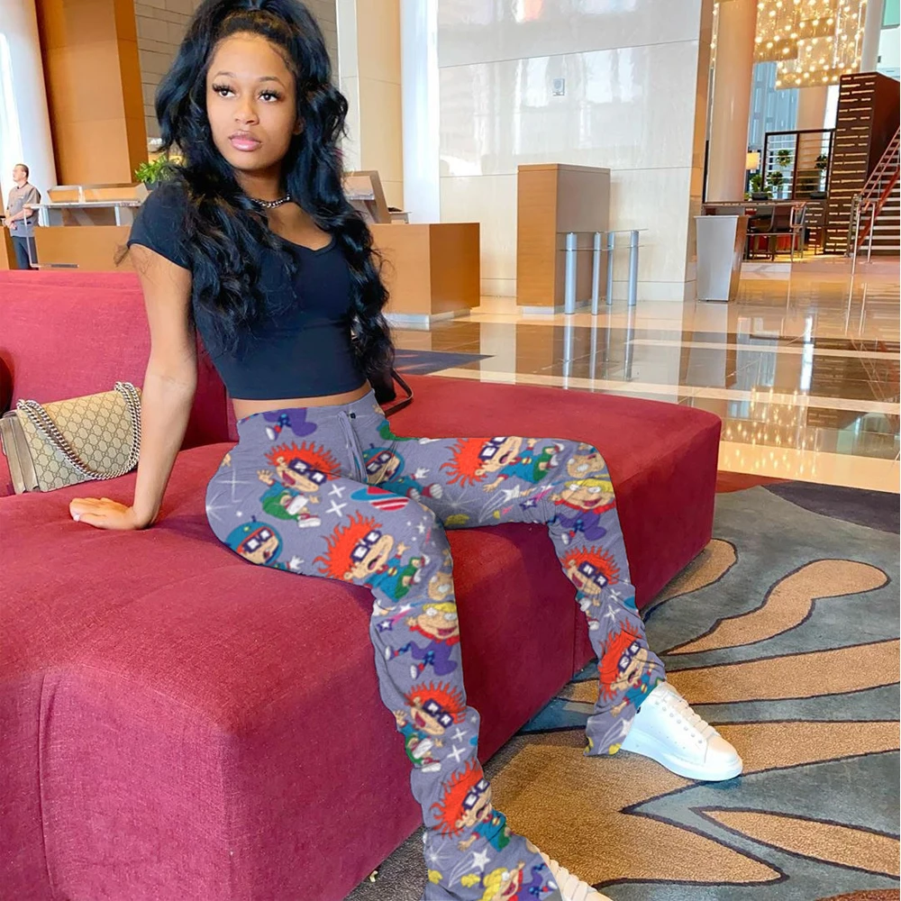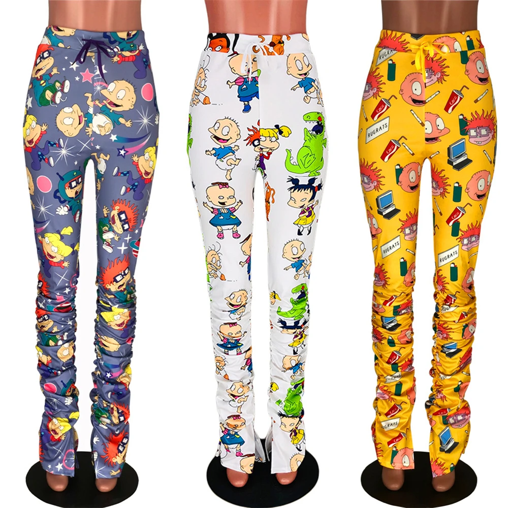 Спортивные штаны с мультяшными рюшами, брюки-клеш, женские штаны, штаны, леггинсы, спортивные штаны, женские штаны для бега