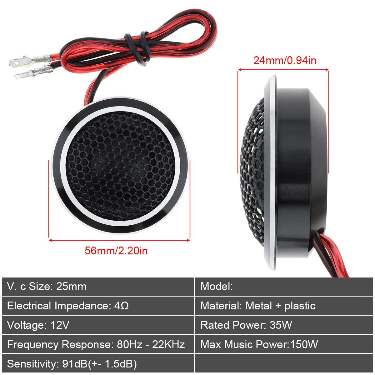 Сопротивление: 4ΩНапряжение: 12 ВДиапазон воспроизводимых частот (Гц): 80 Гц-20 кГцОтношение сигнал-шум: 91 дБВыходная мощность: 150 ВтЧувствительность к звуковым волнам: 92 дБТип материала: ABS + металлМарка автомобиля: УниверсальнаяТипы динамиков: твитерыОсобенности: нетМодель: YH-A8Номинальная мощность: 35 ВтЗвуковая катушка AVS: 20 ммДиаметр: 50 ммДиаметр: 25 ммОсобенность:-Высокоэффективный купольный Высокочастотный динамик.-Больше звука, меньше энергии.-Мгновенный монтаж.-Подходит в любом месте.-Нет магнитного поля, ленты и кредитные карты безопасны.-Встроенный кроссовер.-Для всех автомобильных аудиосистем.Примечание:-Перед покупкой, пожалуйста, подтвердите размер установки, убедитесь, что длина и высота панели машины подходят для вашего автомобиля.-Перед установкой, пожалуйста, внимательно проверьте линии звукового сигнала автомобиля, Если заземление или столкновение, пожалуйста, переподключите линии перед связыванием нашей машины, в противном случае она может сжечь машину.