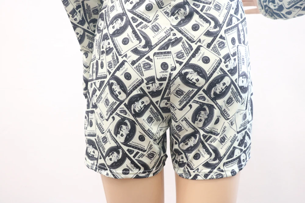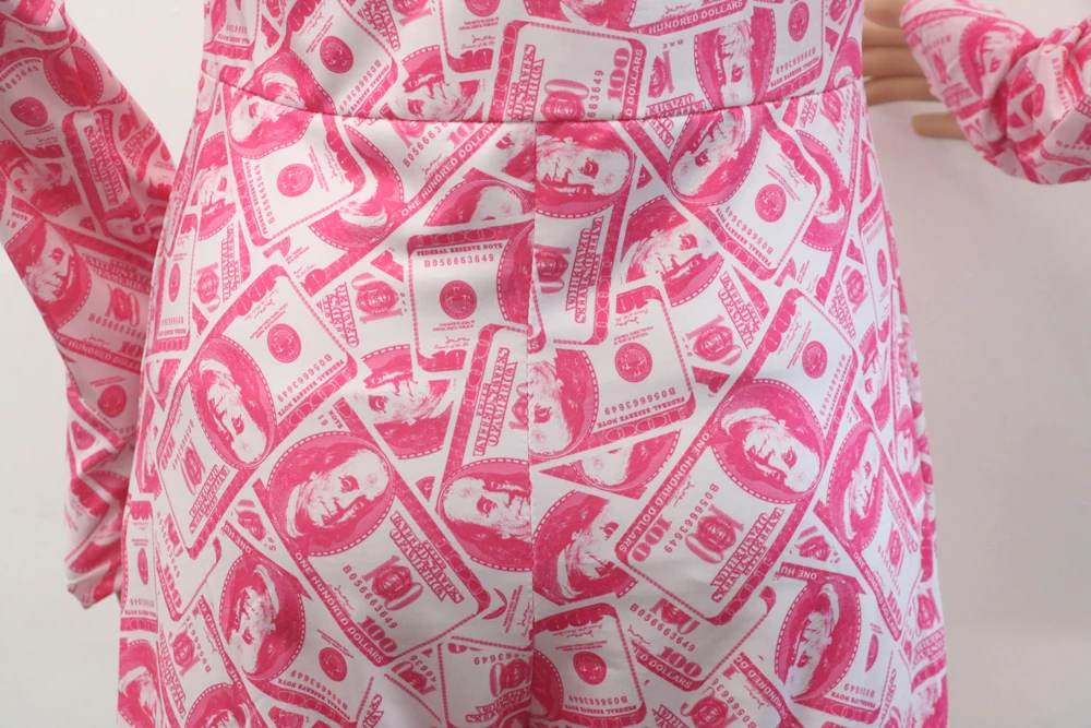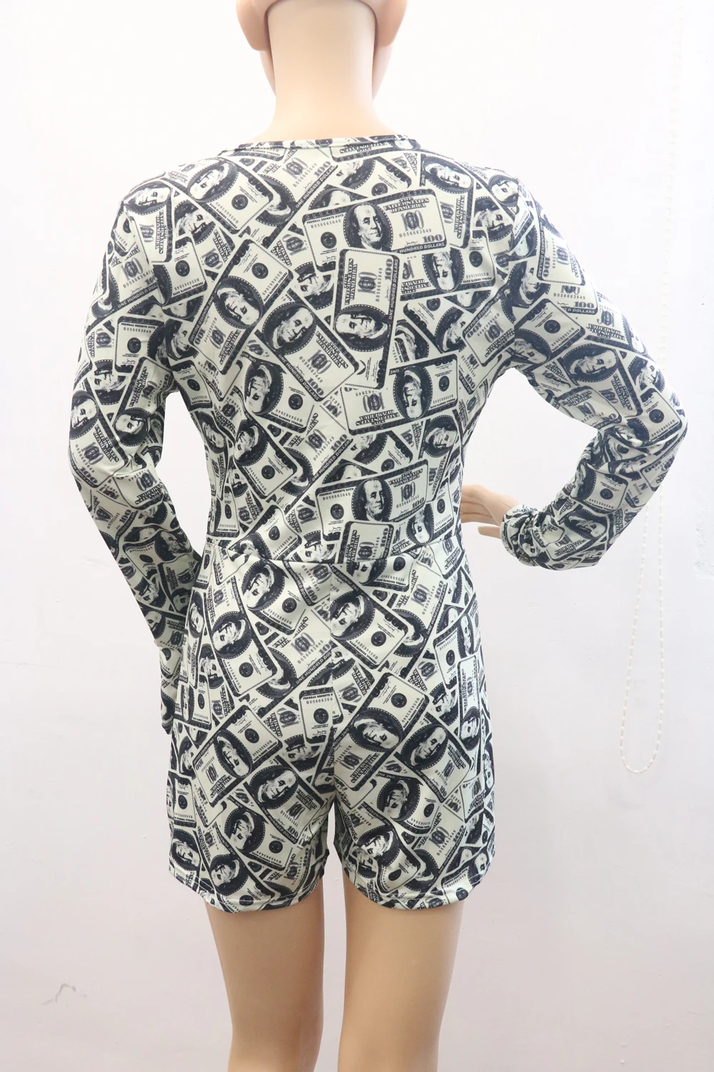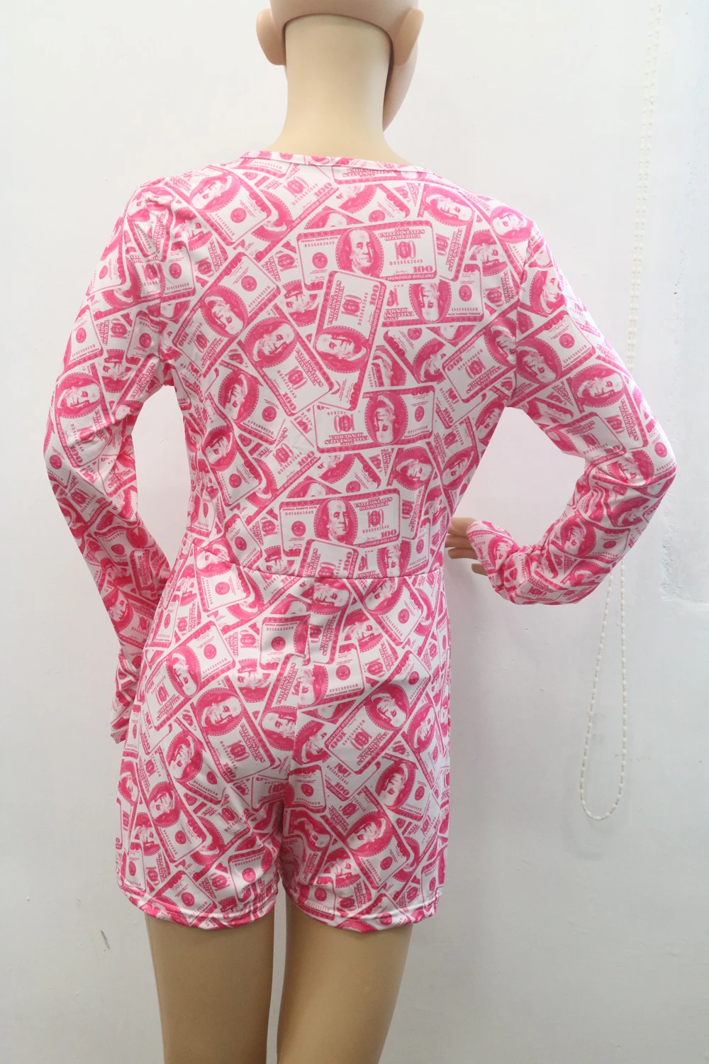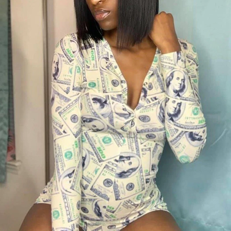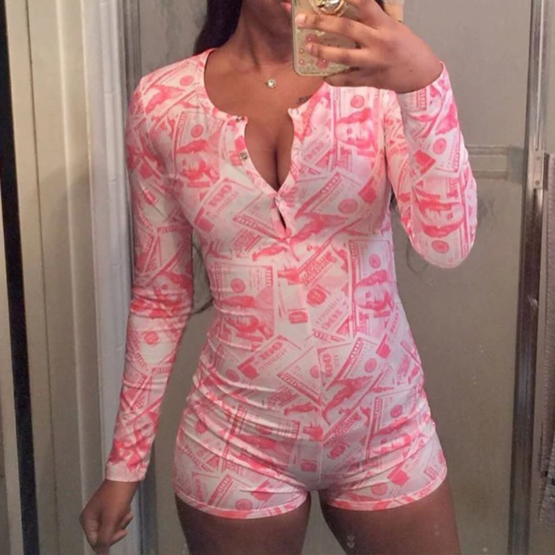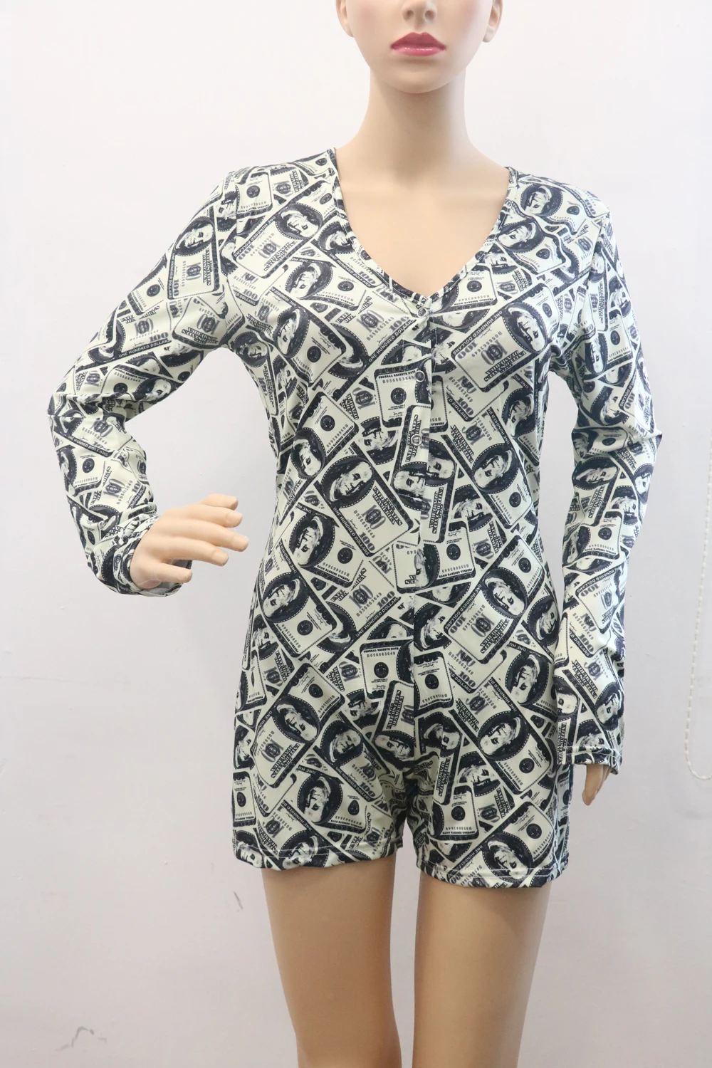 Пикантная женская пижама с принтом денег, одежда для сна с длинным рукавом, женская одежда для сна, короткий комбинезон, комбинезон, женское нижнее белье, боди, домашняя одежда