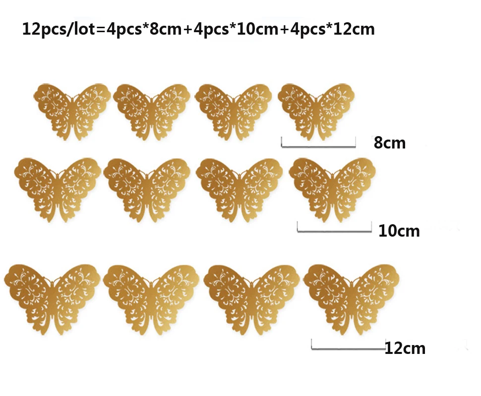 12 шт.лот 3D золотые и серебряные бабочки Наклейки на стены домашний художественный стикер украшения для бабочки дисплей Вечерние