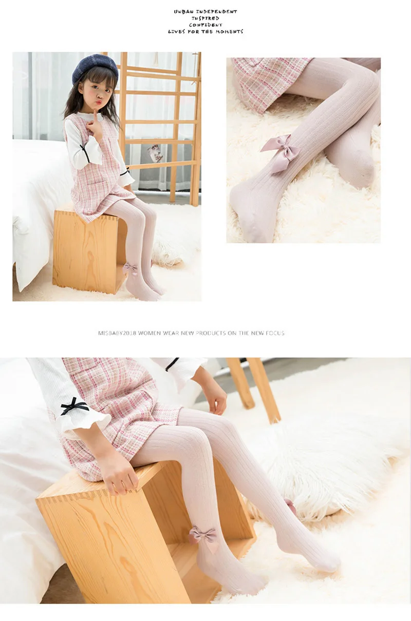 Милые колготки с бантом для девочек, трикотажные хлопковые детские чулки для девочек, мягкие дышащие детские колготки, подходят для детей от 0 до 11 лет колготки для девочек колготки для девочки чулки большой размер