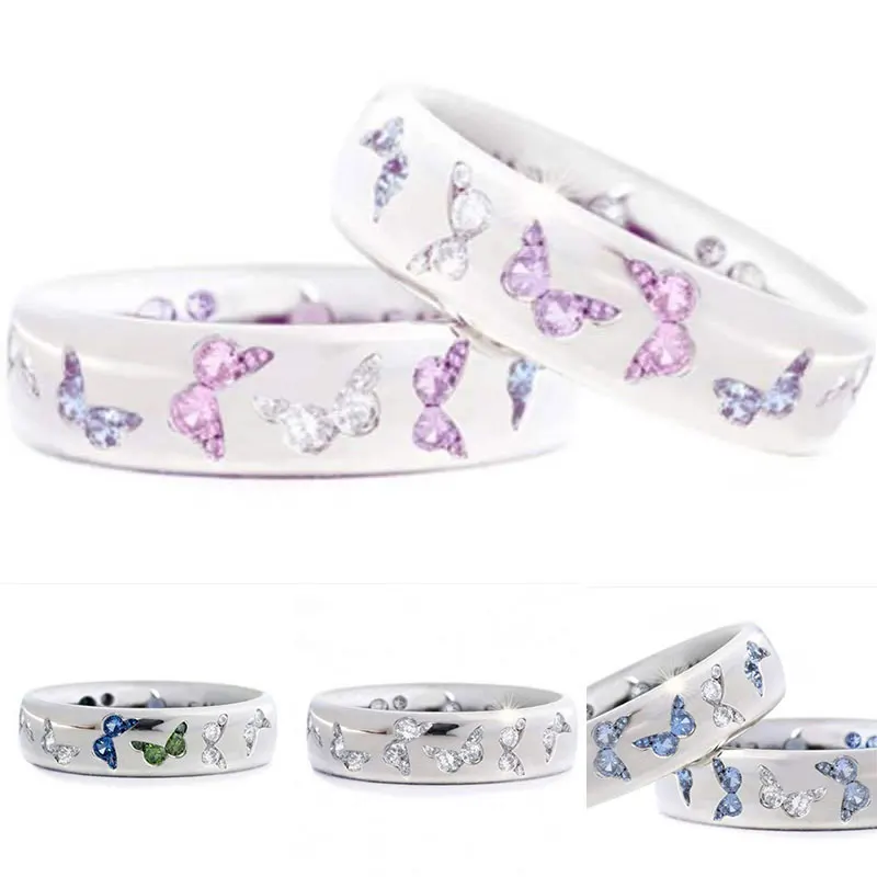 2020 модные креативные разноцветные обручальные кольца с бабочками для женщин, элегантные разноцветные циркониевые кольца, ювелирные изделия, хороший подарок для девушки, бижутерия