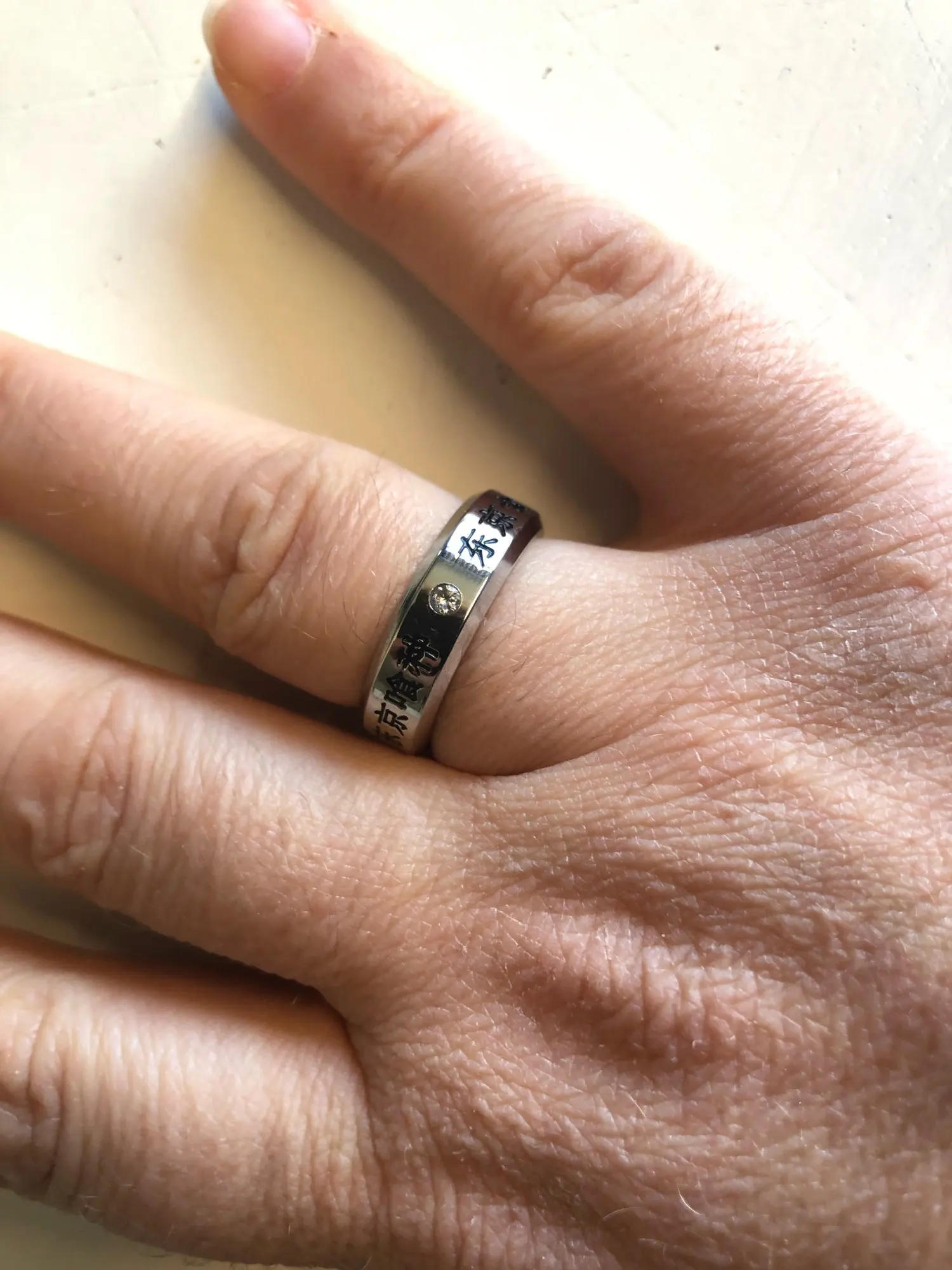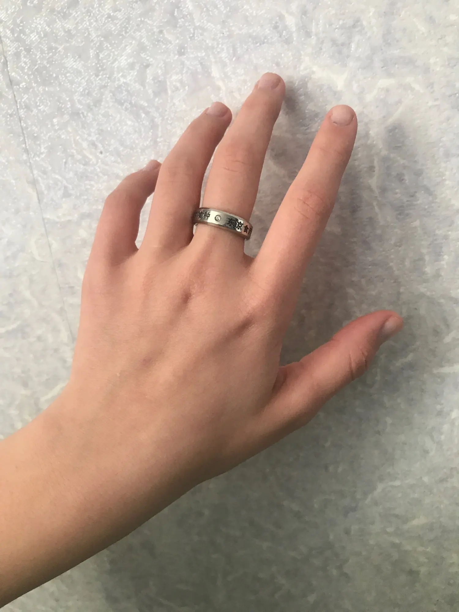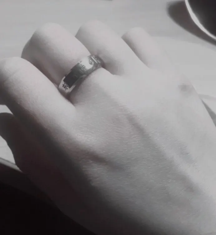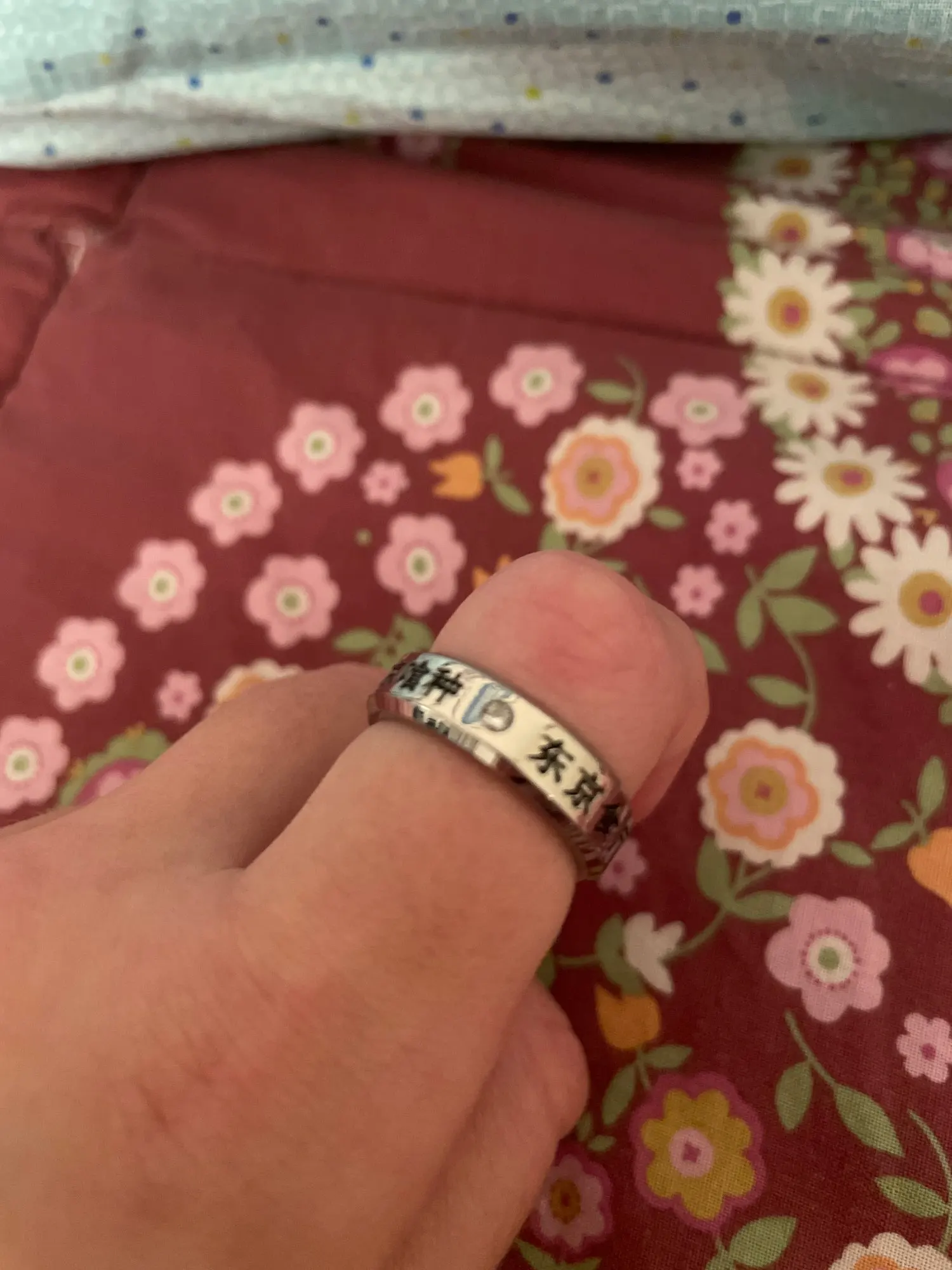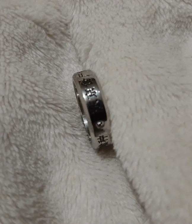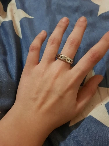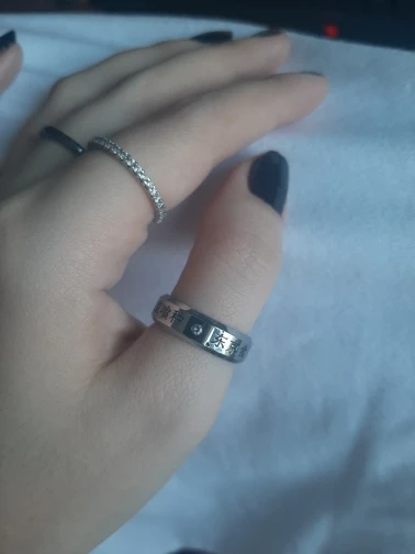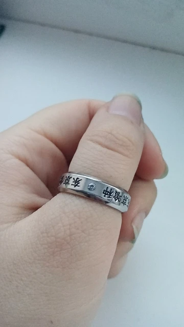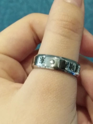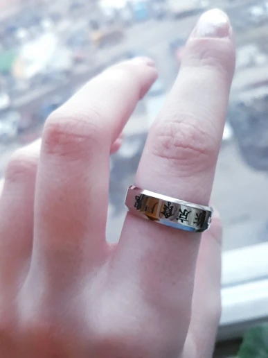 быстро отправили и доставили колечко. очень крутое кольцо, четкие иероглифы, плюс оно переливается, зеркалит и это выглядит очень классно мой диаметр примерно где-то 17 мм. в итоге держится только на большом пальце, на указательном слабенько, может соскачить, но это не имеет значения, так как кольцо в подарок парню будет спасибо!
