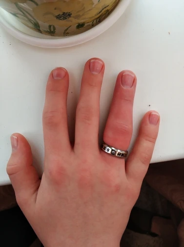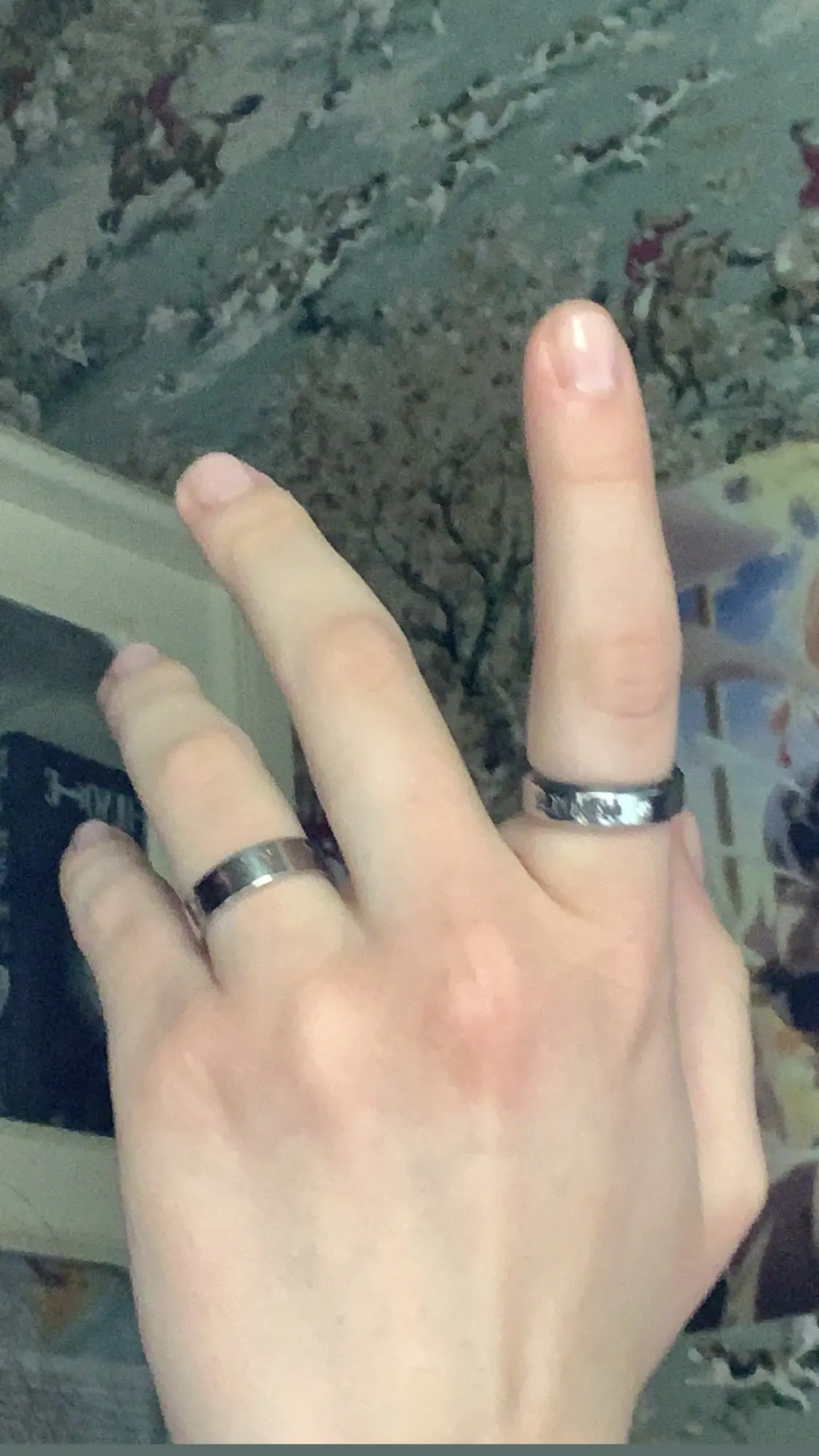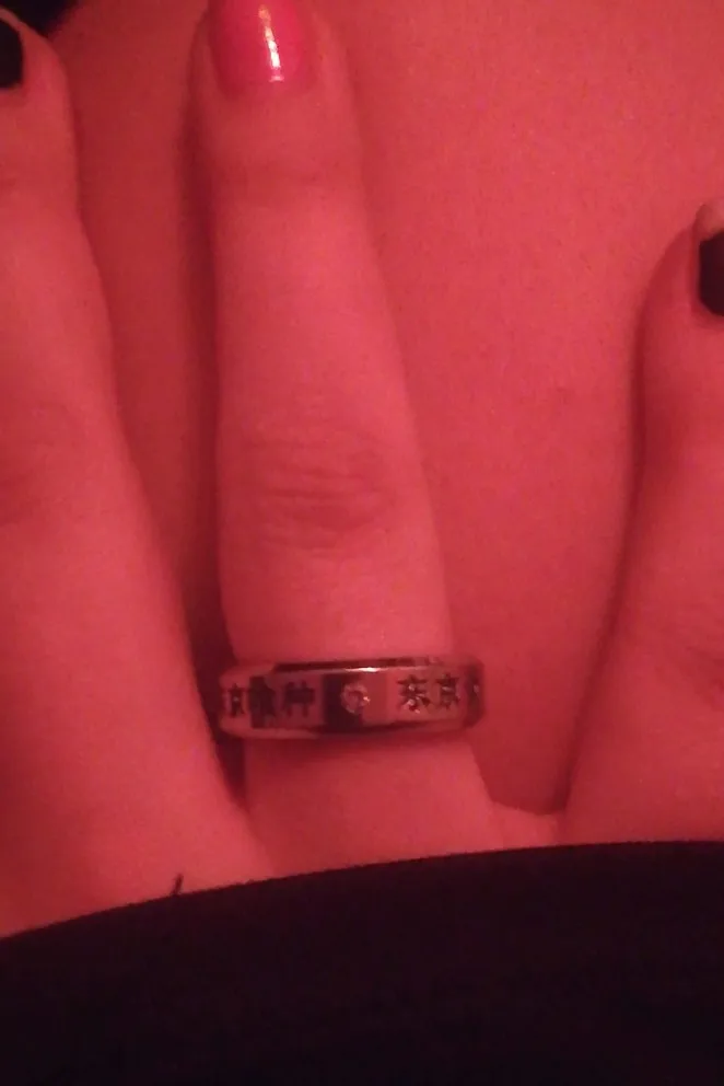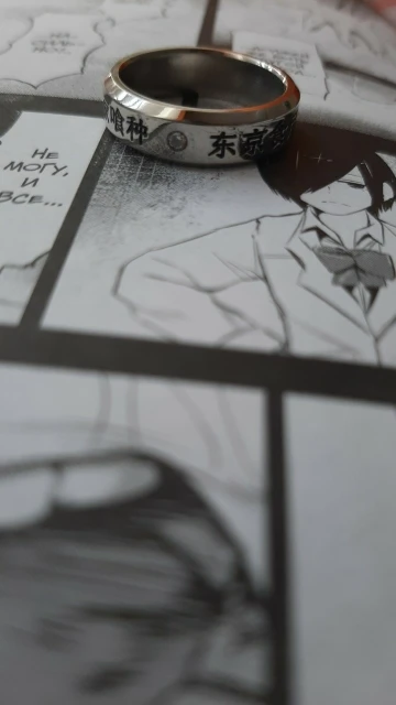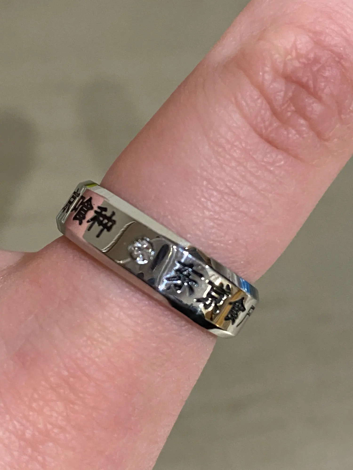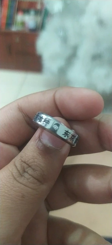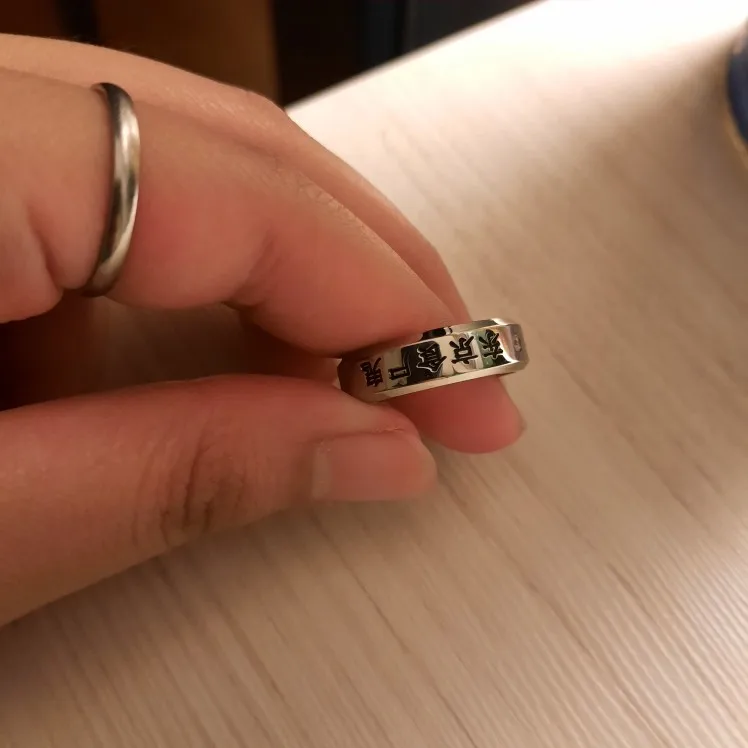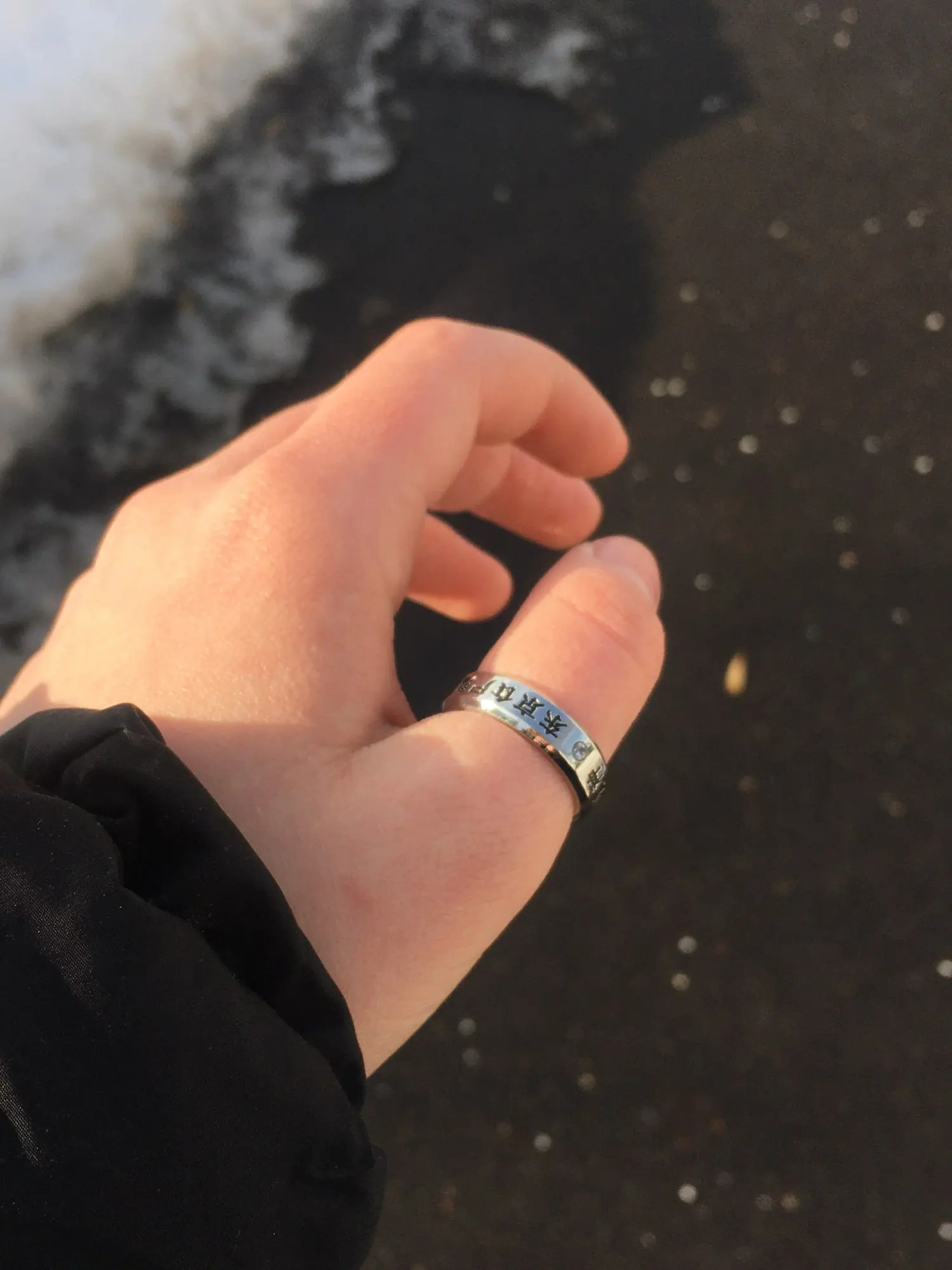 быстро отправили и доставили колечко. очень крутое кольцо, четкие иероглифы, плюс оно переливается, зеркалит и это выглядит очень классно мой диаметр примерно где-то 17 мм. в итоге держится только на большом пальце, на указательном слабенько, может соскачить, но это не имеет значения, так как кольцо в подарок парню будет спасибо!