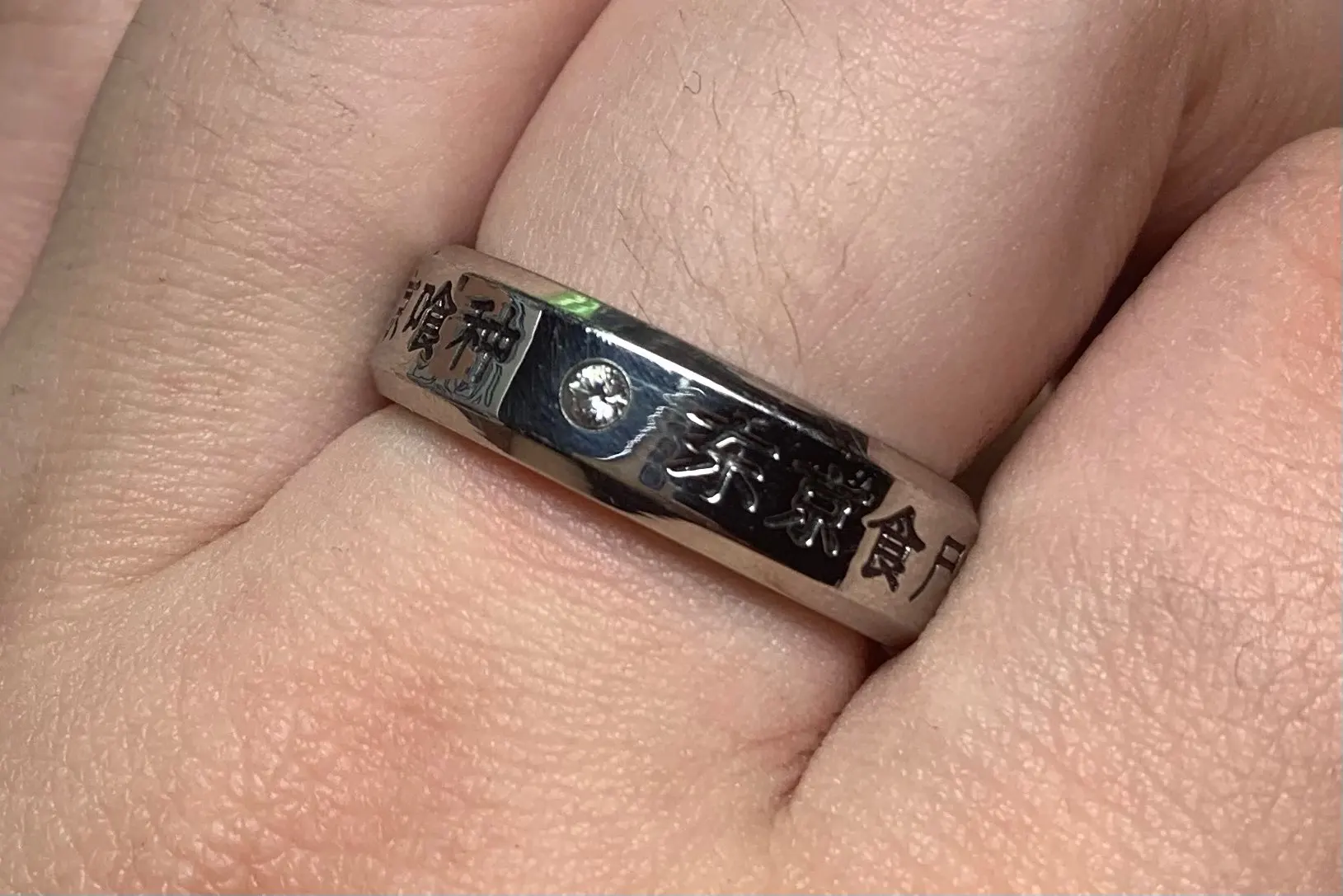 Кольцо отличное! Детализированное, иероглифы выполнены качественно , сверкает маленький бриллиантик , выглядит дорого ! Советую!