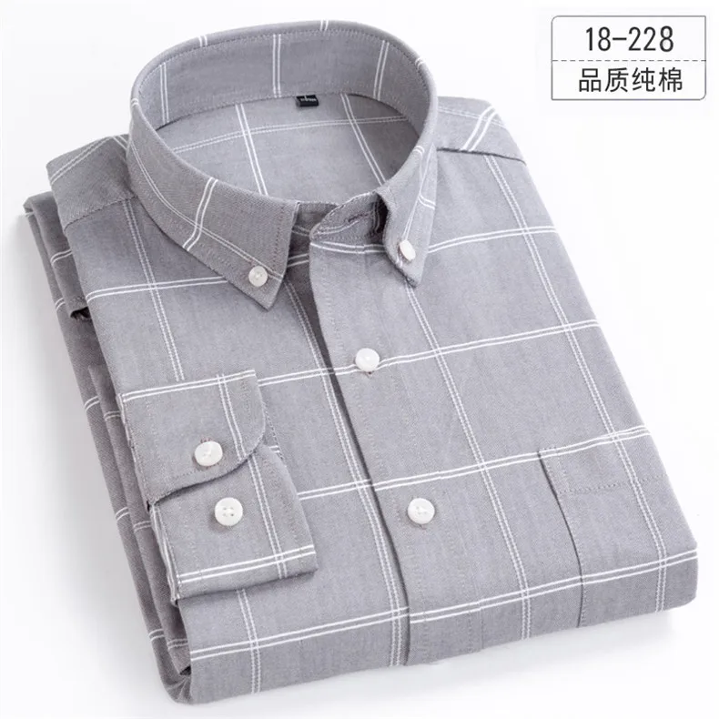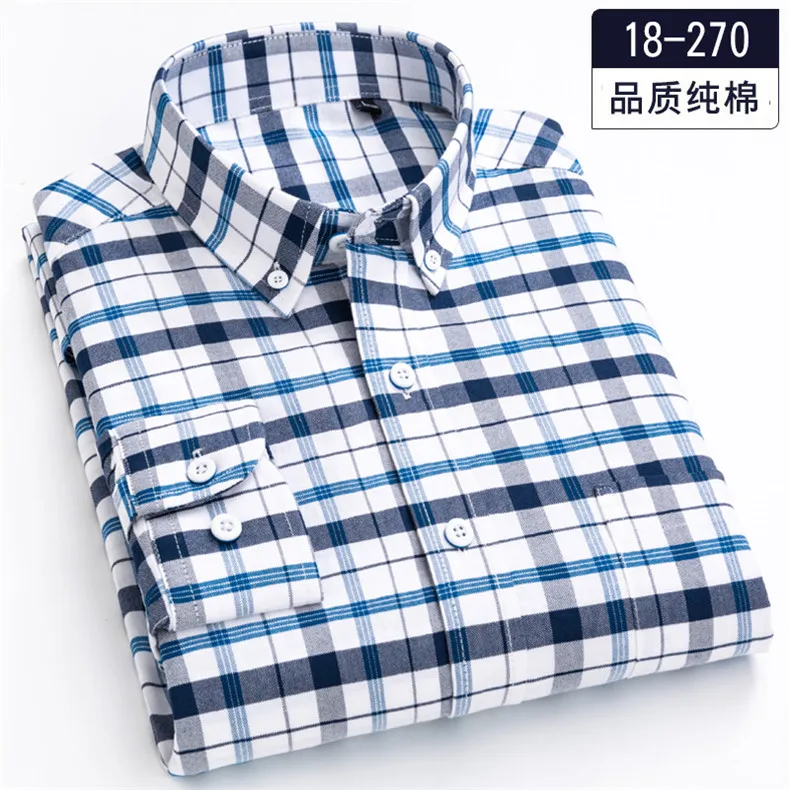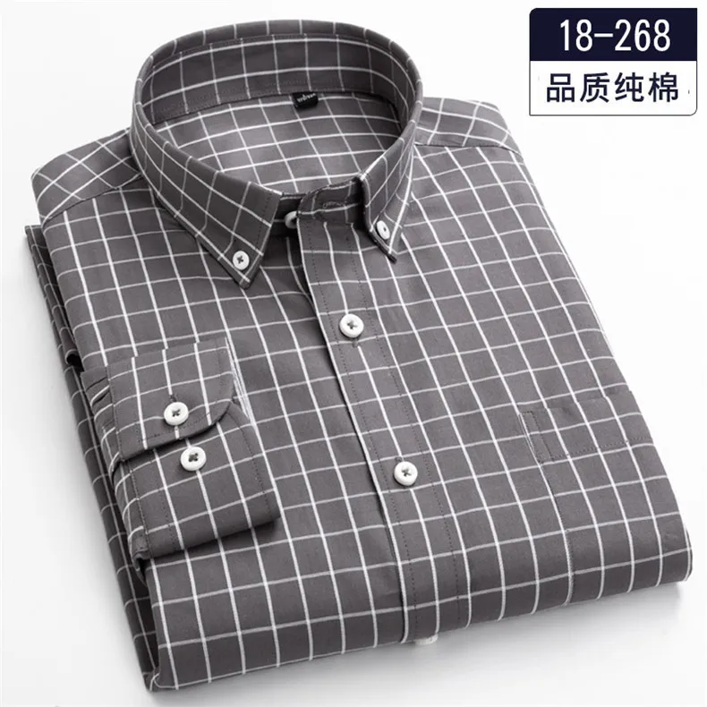 рубашка в клетку Клетчатая рубашка для мужчин, рубашка из чистого хлопка с длинным рукавом и воротником на кнопках, деловая Мужская Повседневная рубашка в клетку, 14 цветов