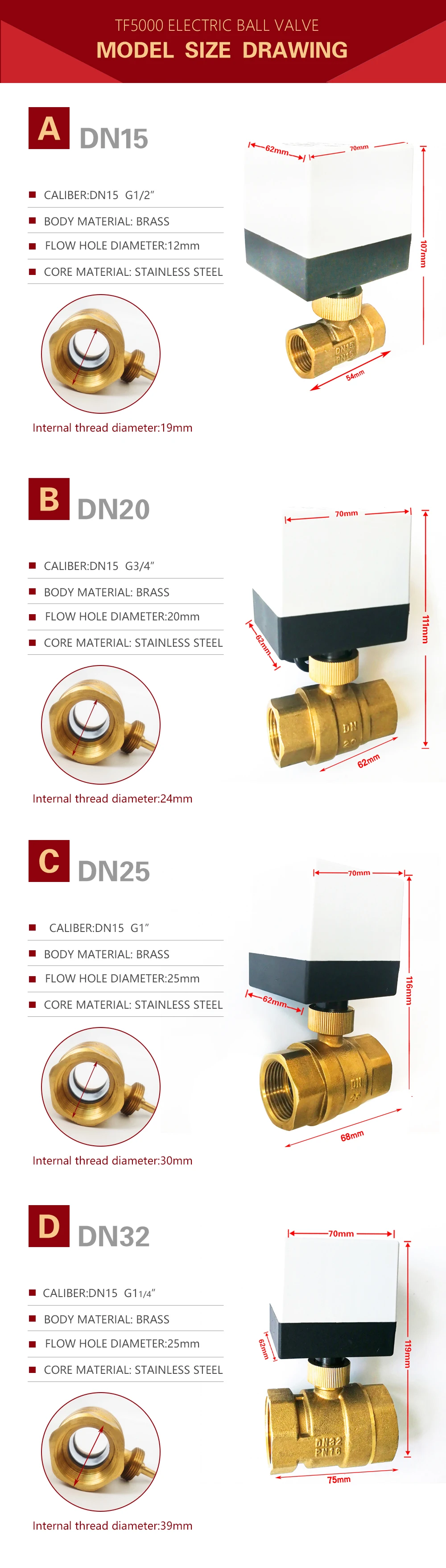 Моторизованный Электрический 2-ходовой латунный шаровой клапан DN20 34 "AC 220V 2-сторонний 3 провод-с приводным кабелем для газа воды и масла