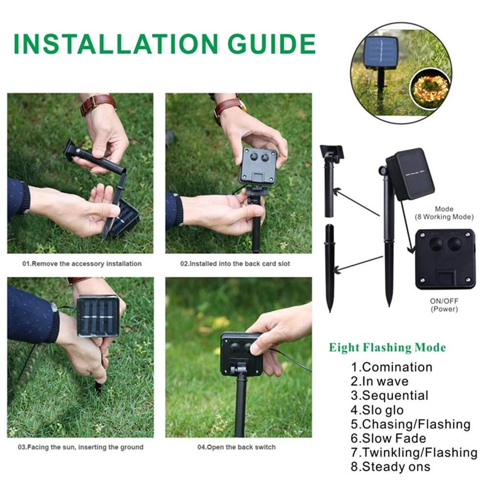 Светильник на солнечной батарее является водонепроницаемым и может использоваться в уличных садах, дождях и других плохих погодных условиях.